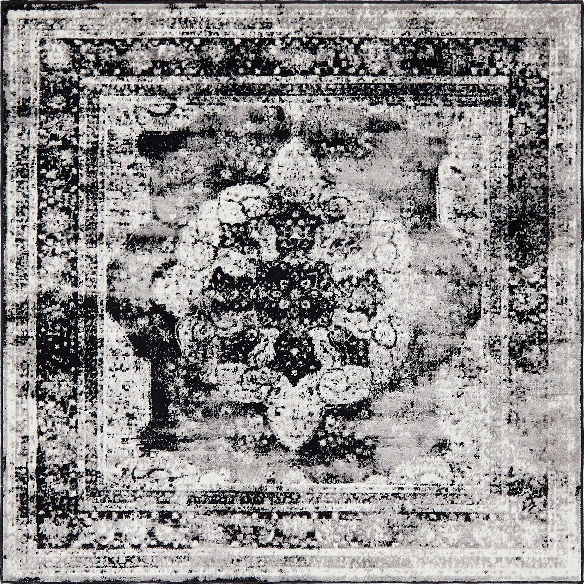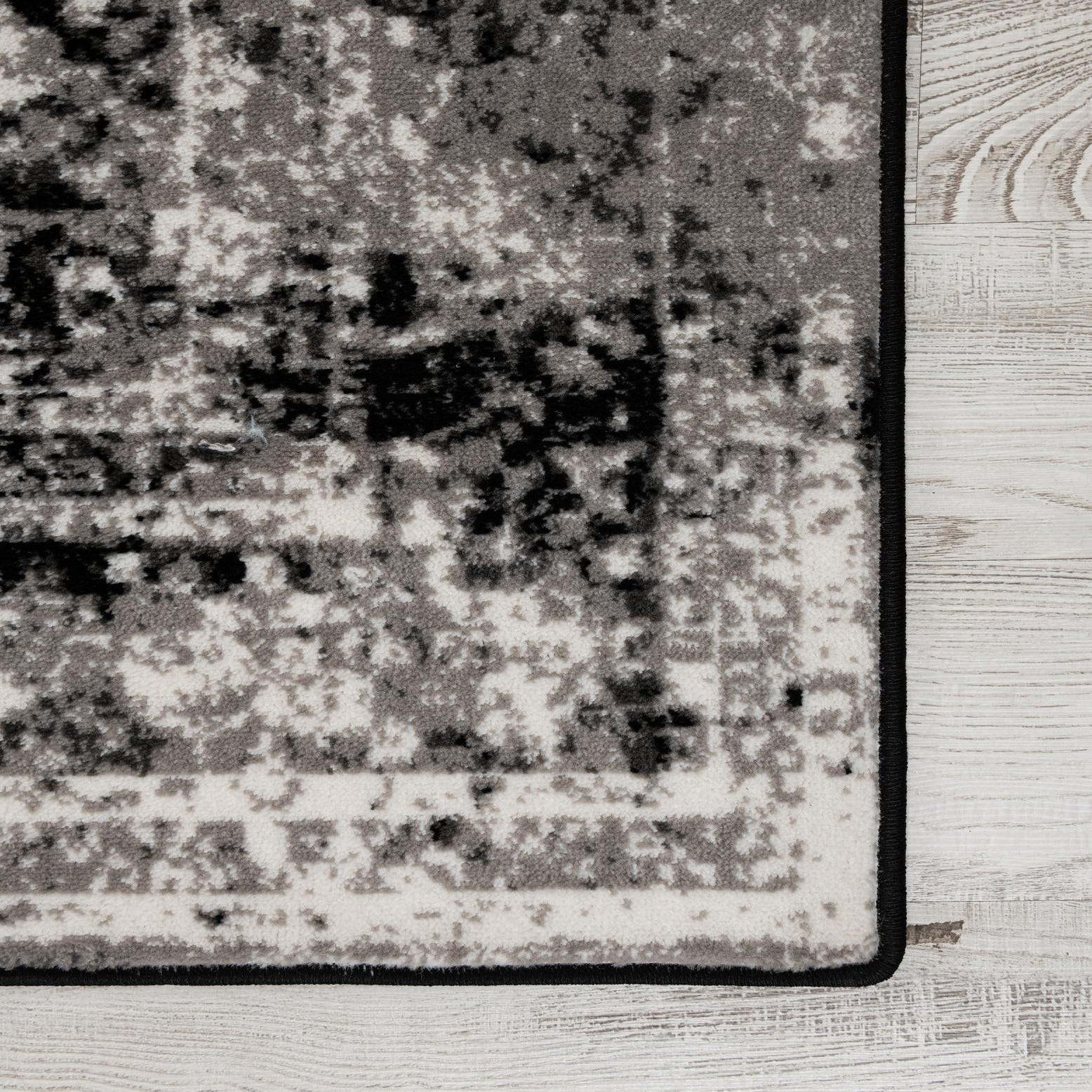 Primary color is Black. Colors in this rug include: Black, Gray, Ivory.