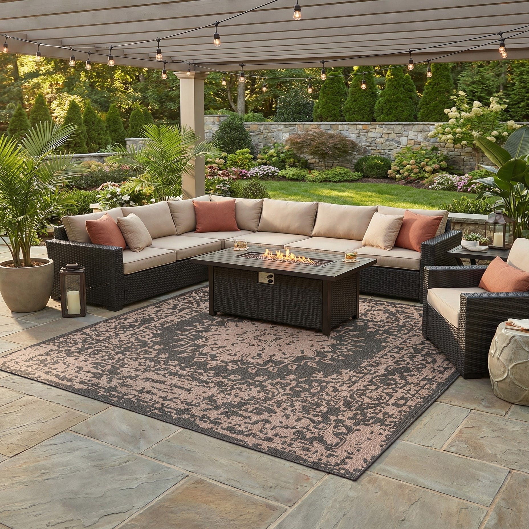 Detail image of 13' x 13'  Washable Traditional Indoor / Outdoor Square Rug