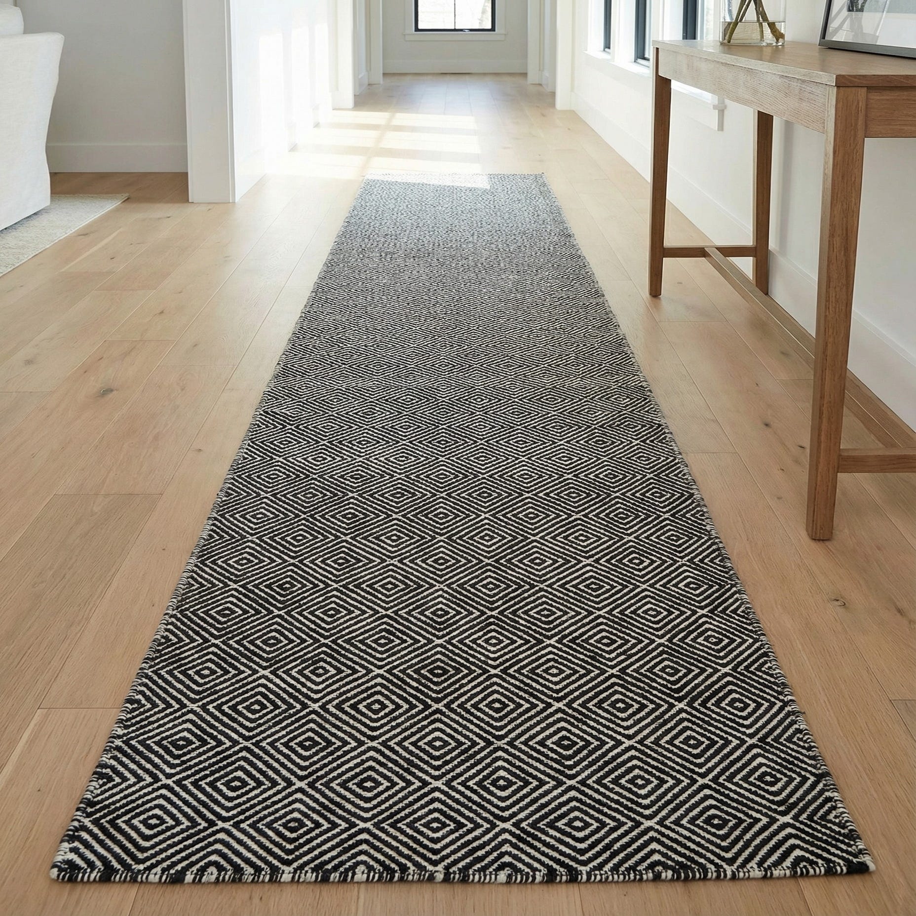 Detail image of 2' 7 x 14' 1  Hand Woven Geo Trellis Flatweave Runner Rug