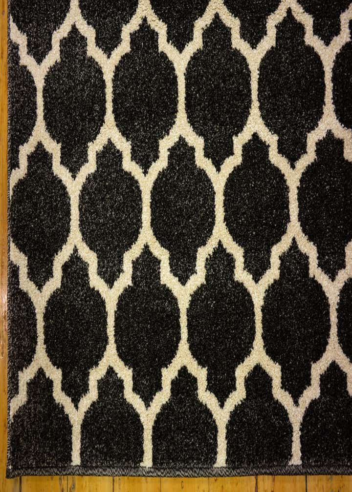 Primary color is Black. Colors in this rug include: Black, Beige.