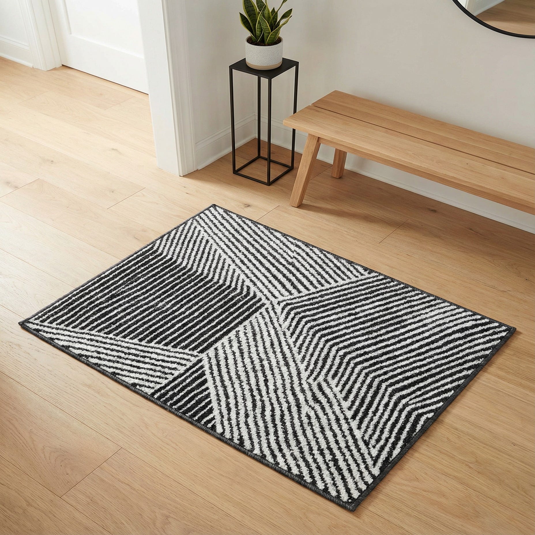 Primary color is Black. Colors in this rug include: Black, Ivory.