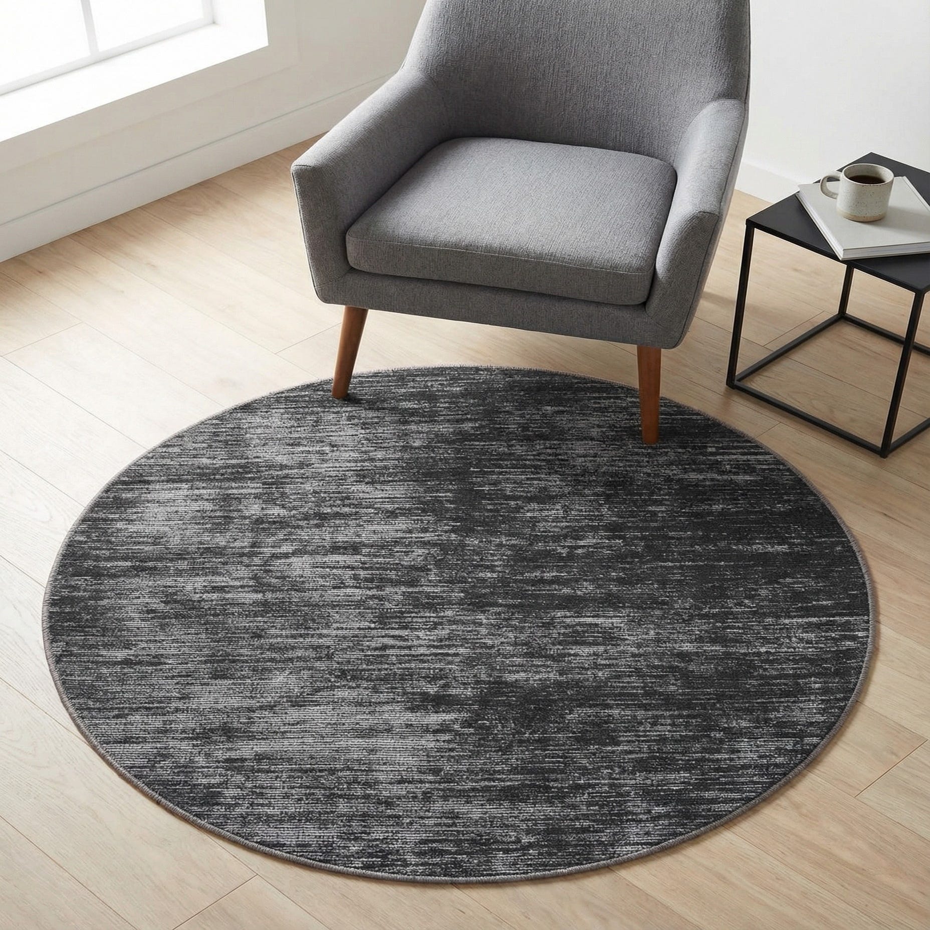 • Charcoal grey upholstered armchair