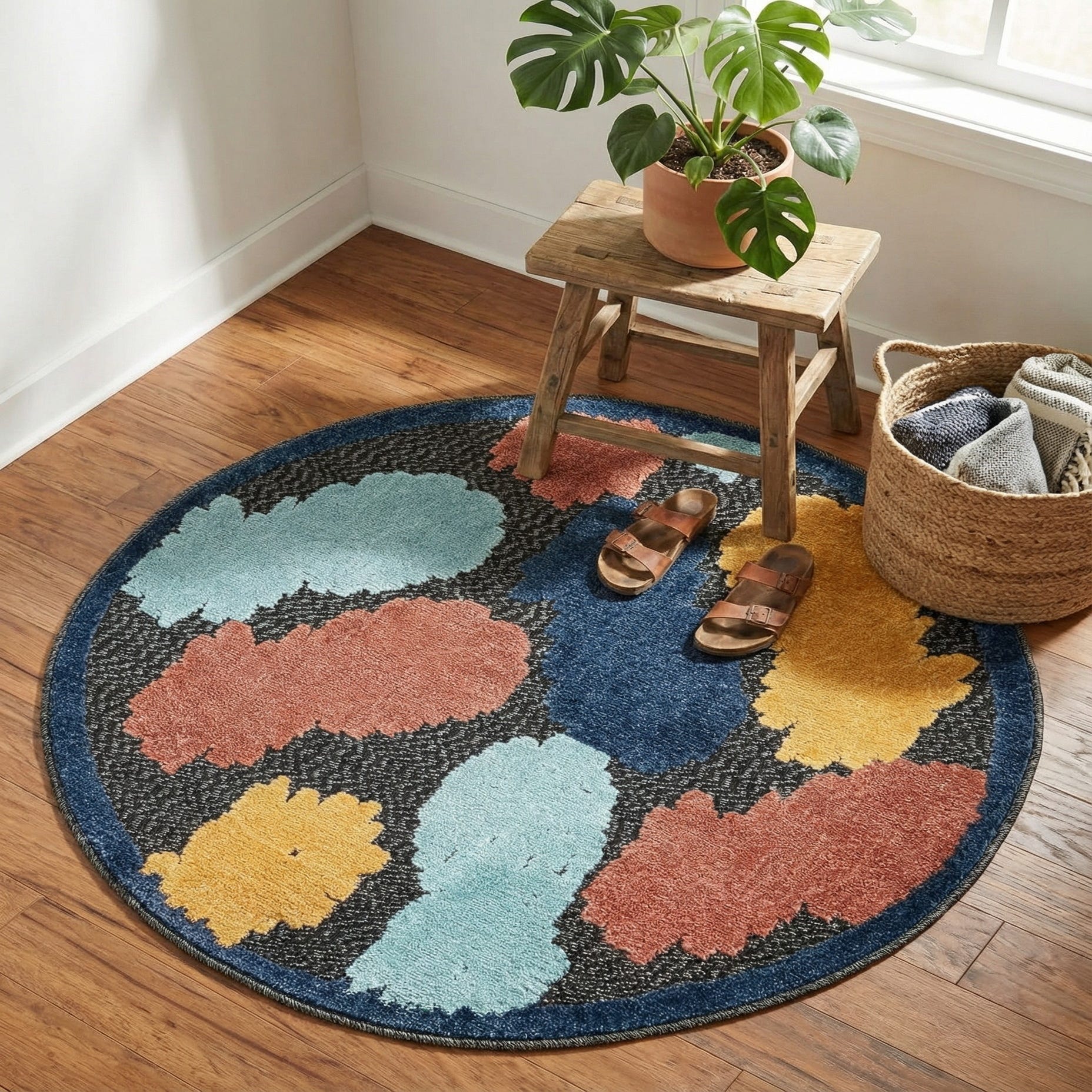 3' 3 x 3' 3 Washable Belize Indoor / Outdoor Round Rug
