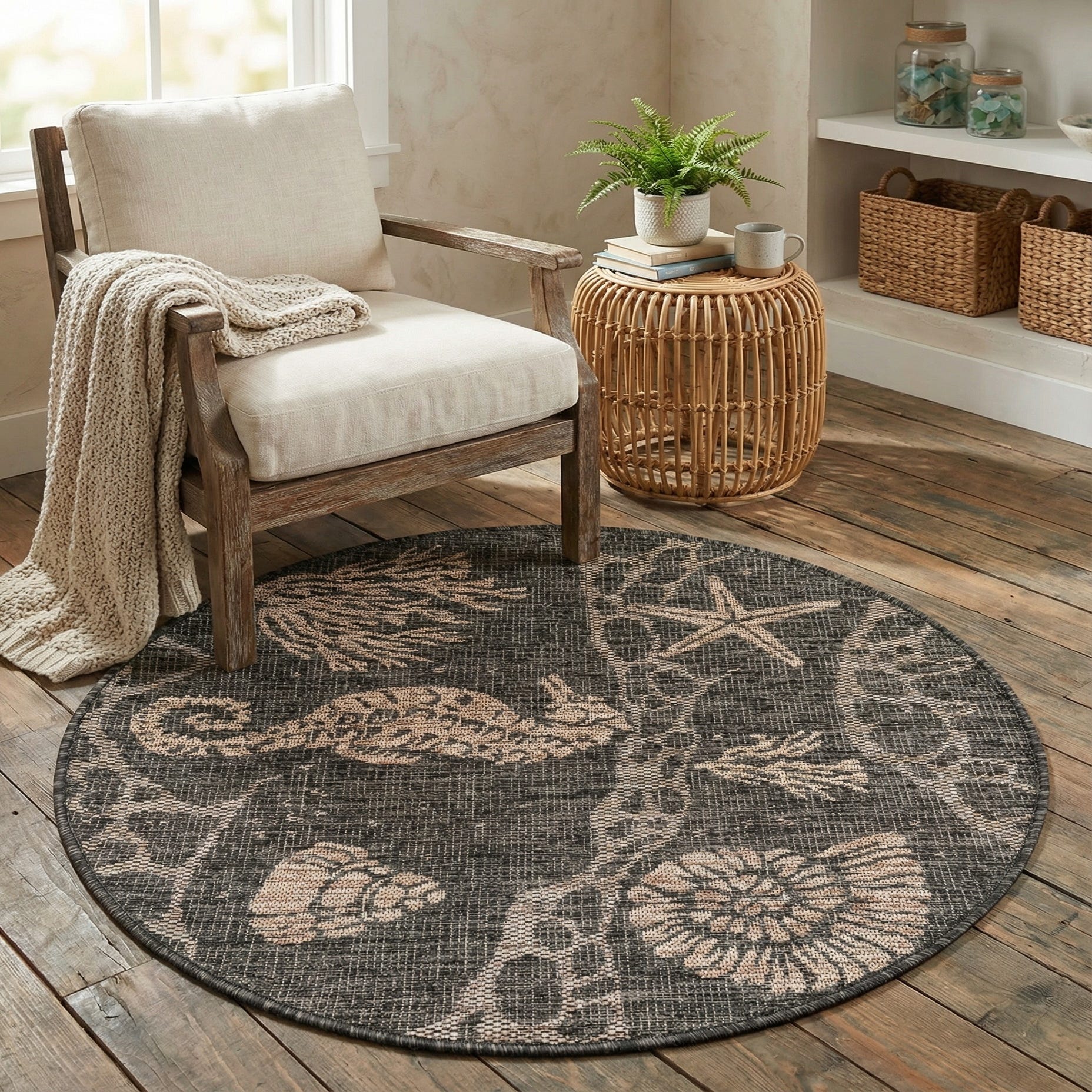 3' x 3' Washable Coastal Indoor / Outdoor Round Rug