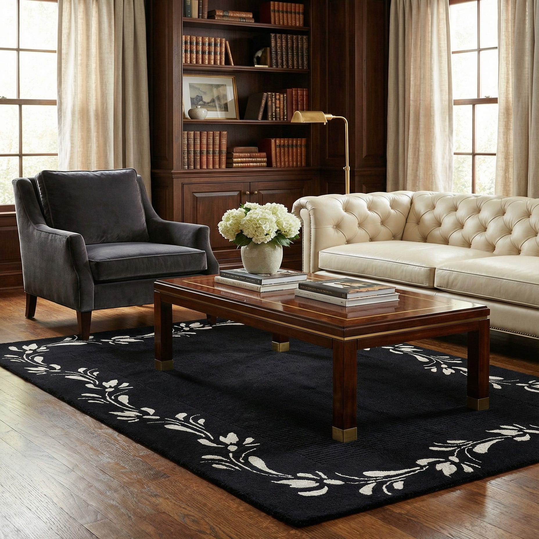 Primary color is Black. Colors in this rug include: Black, Gray, Silver.