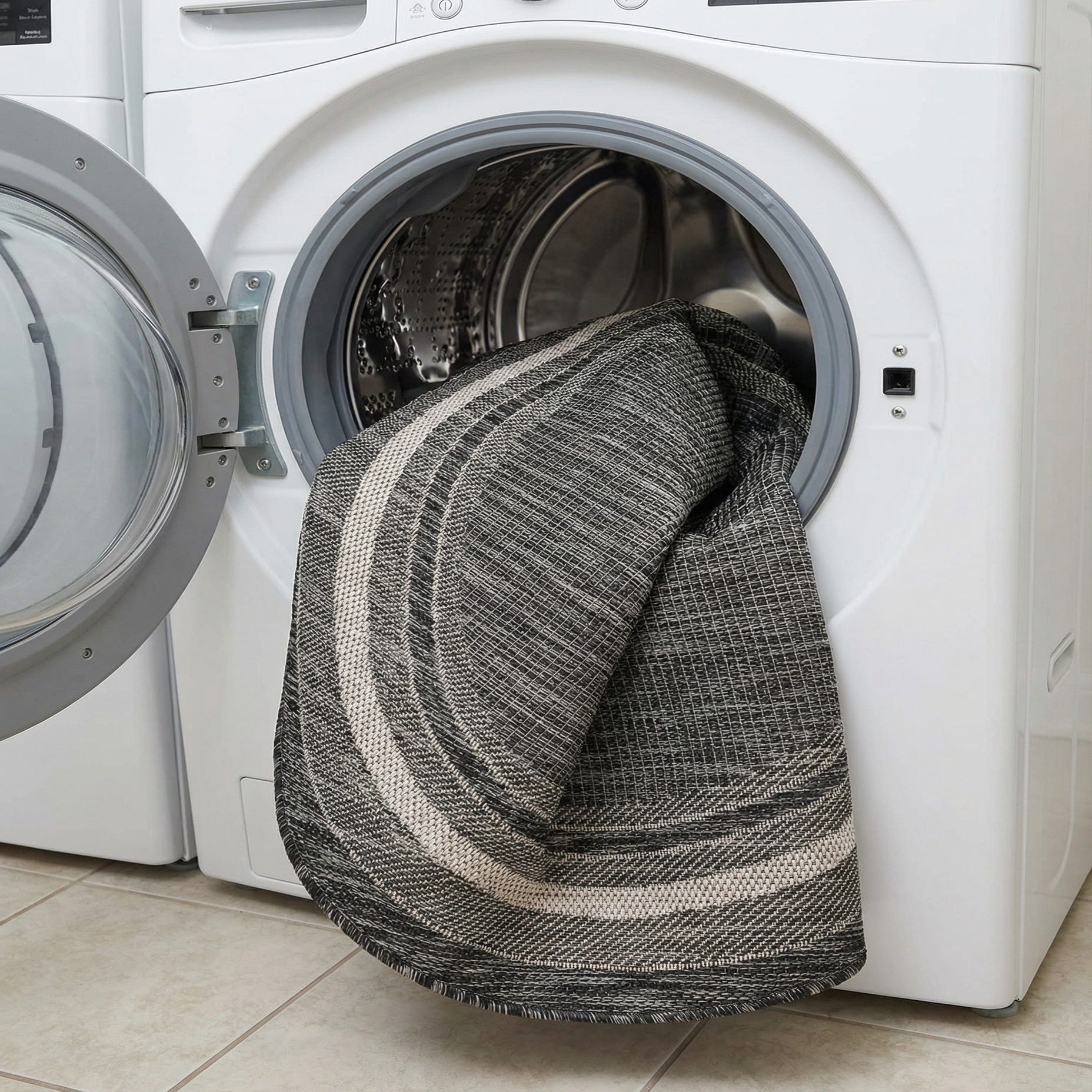 4' x 4' Washable Border Indoor / Outdoor Round Rug