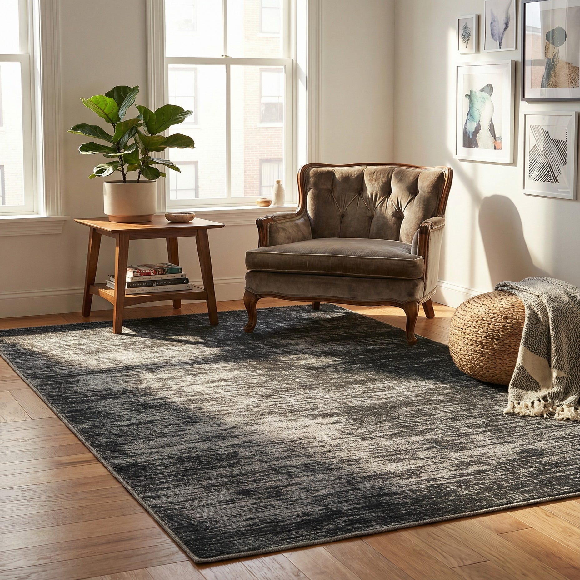 Primary color is Black. Colors in this rug include: Black, Ivory.