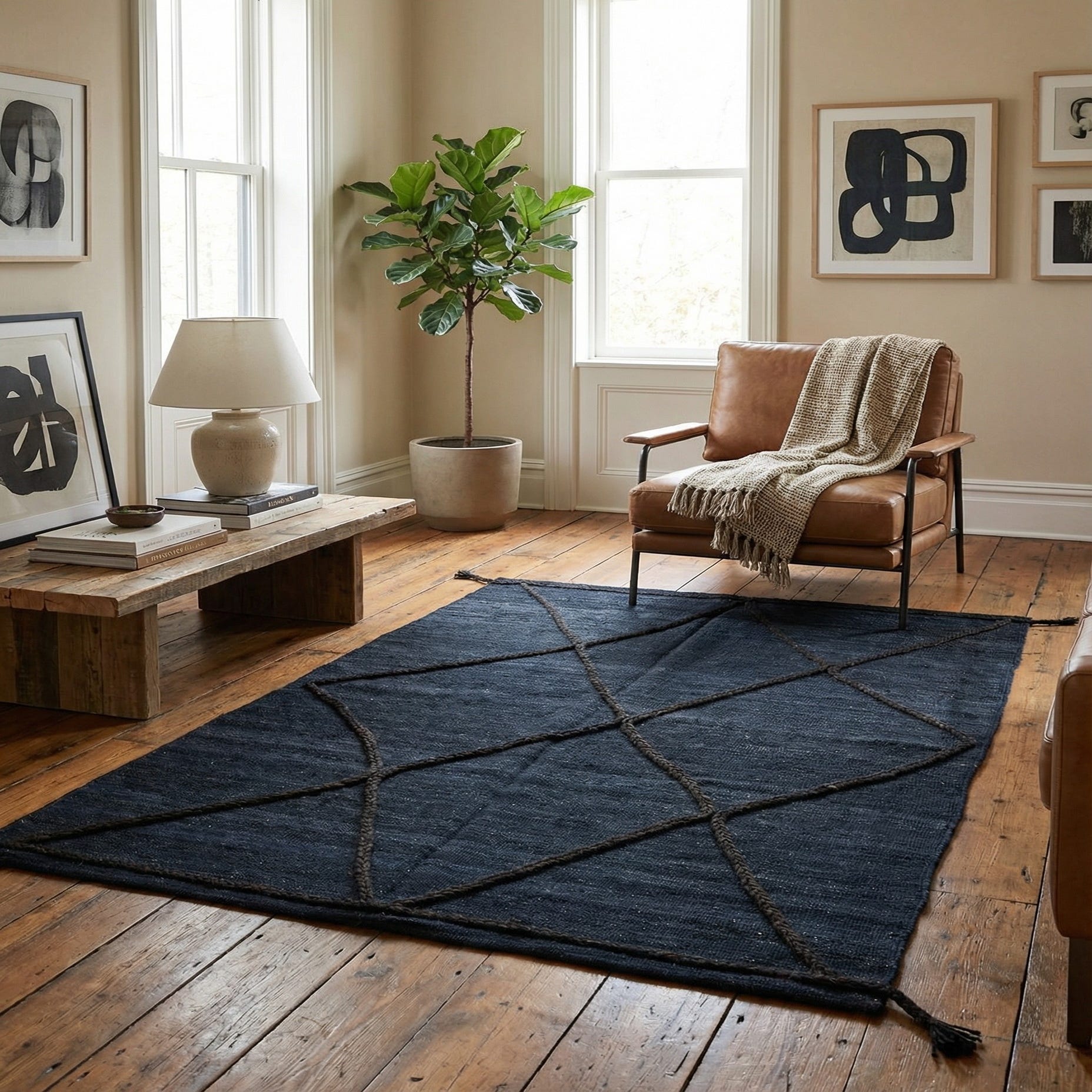 Primary color is Black. Colors in this rug include: Black, Brown.