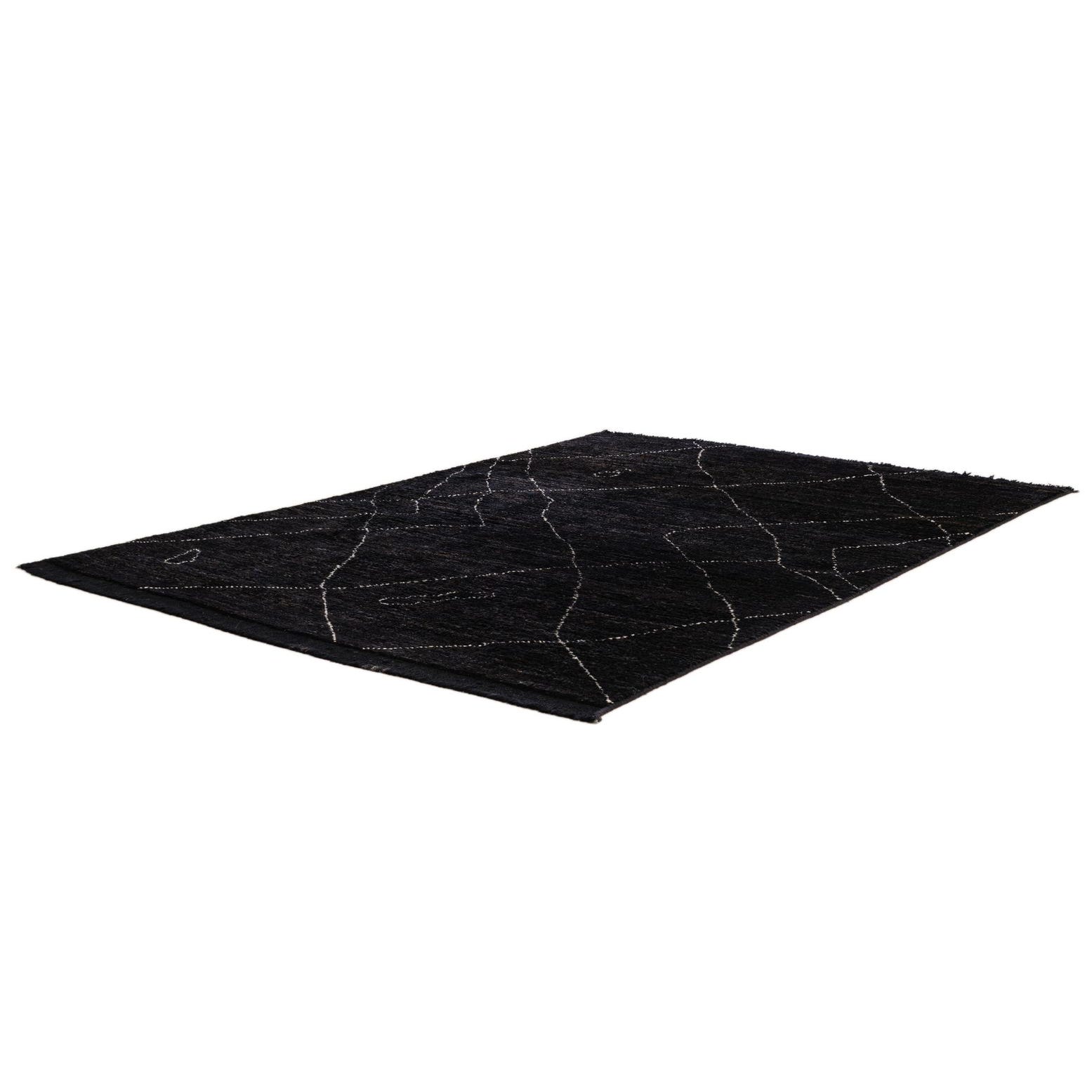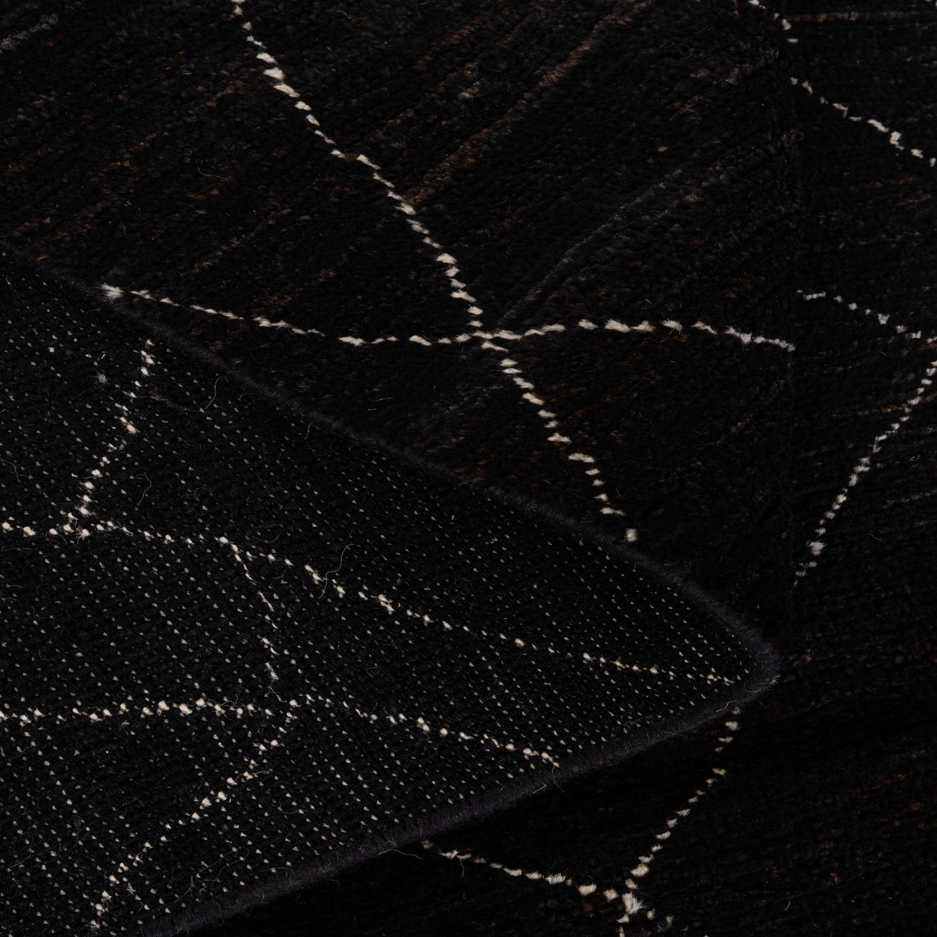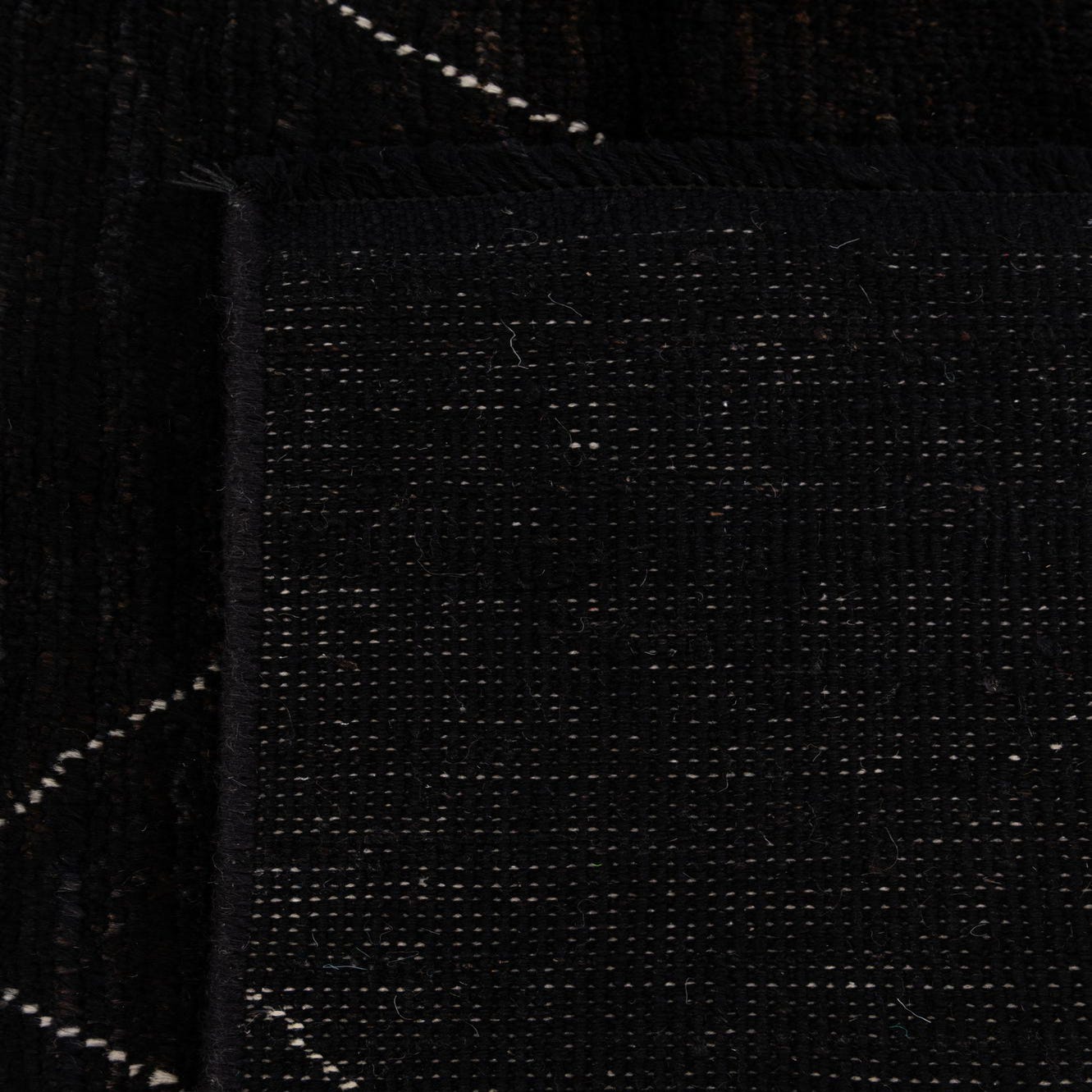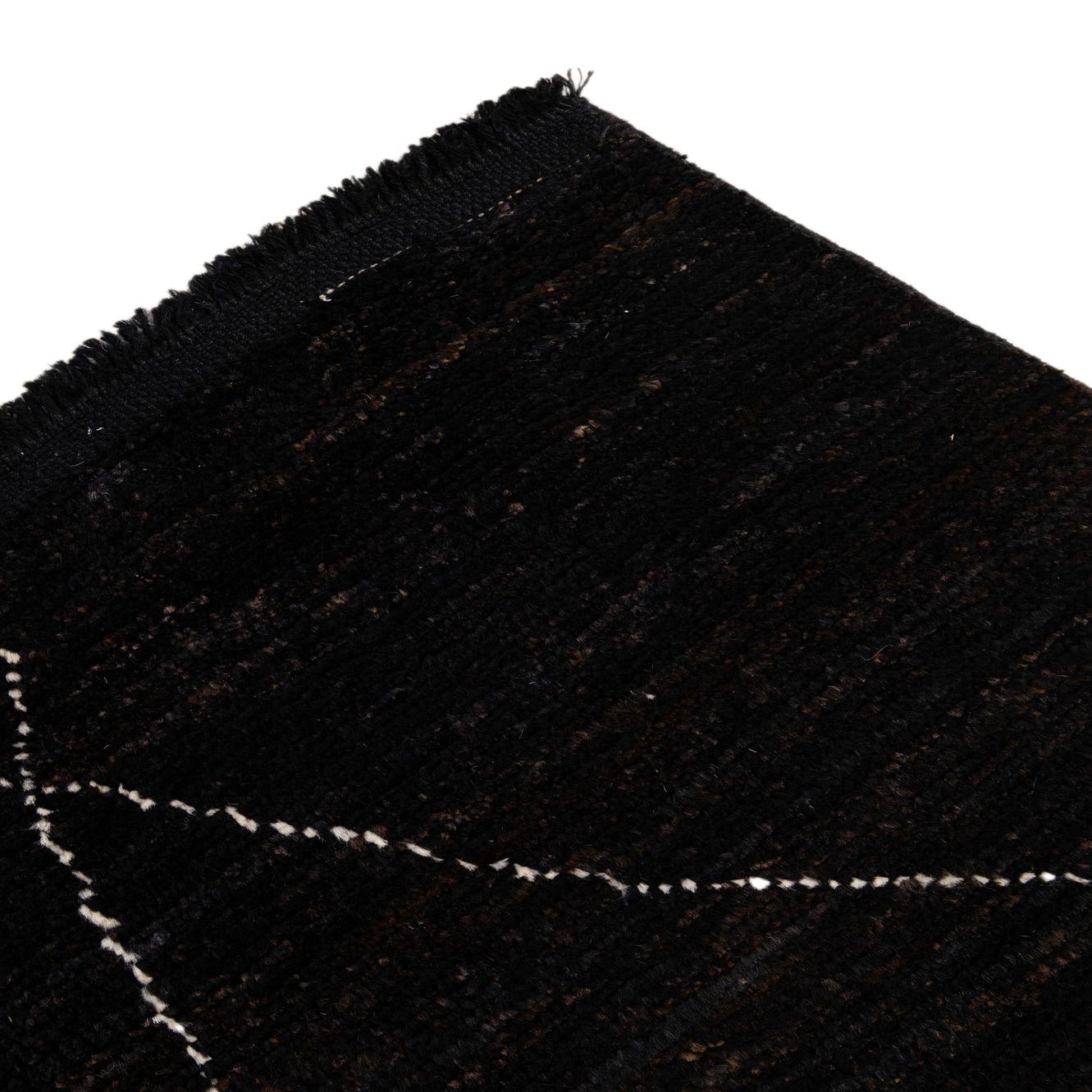 Primary color is Black. Colors in this rug include: Black, Brown, Ivory.