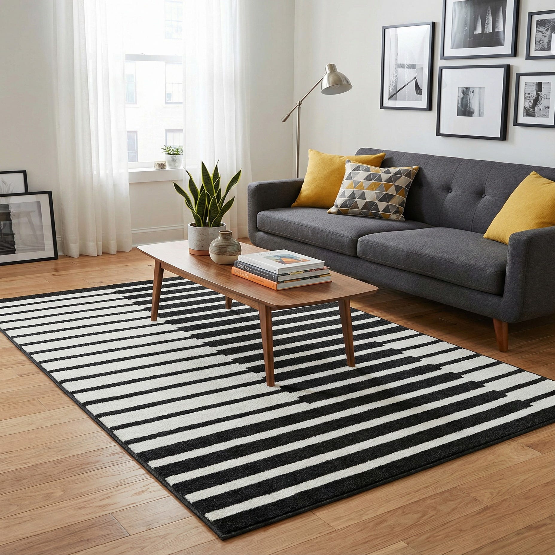 Primary color is Black. Colors in this rug include: Black, Ivory.
