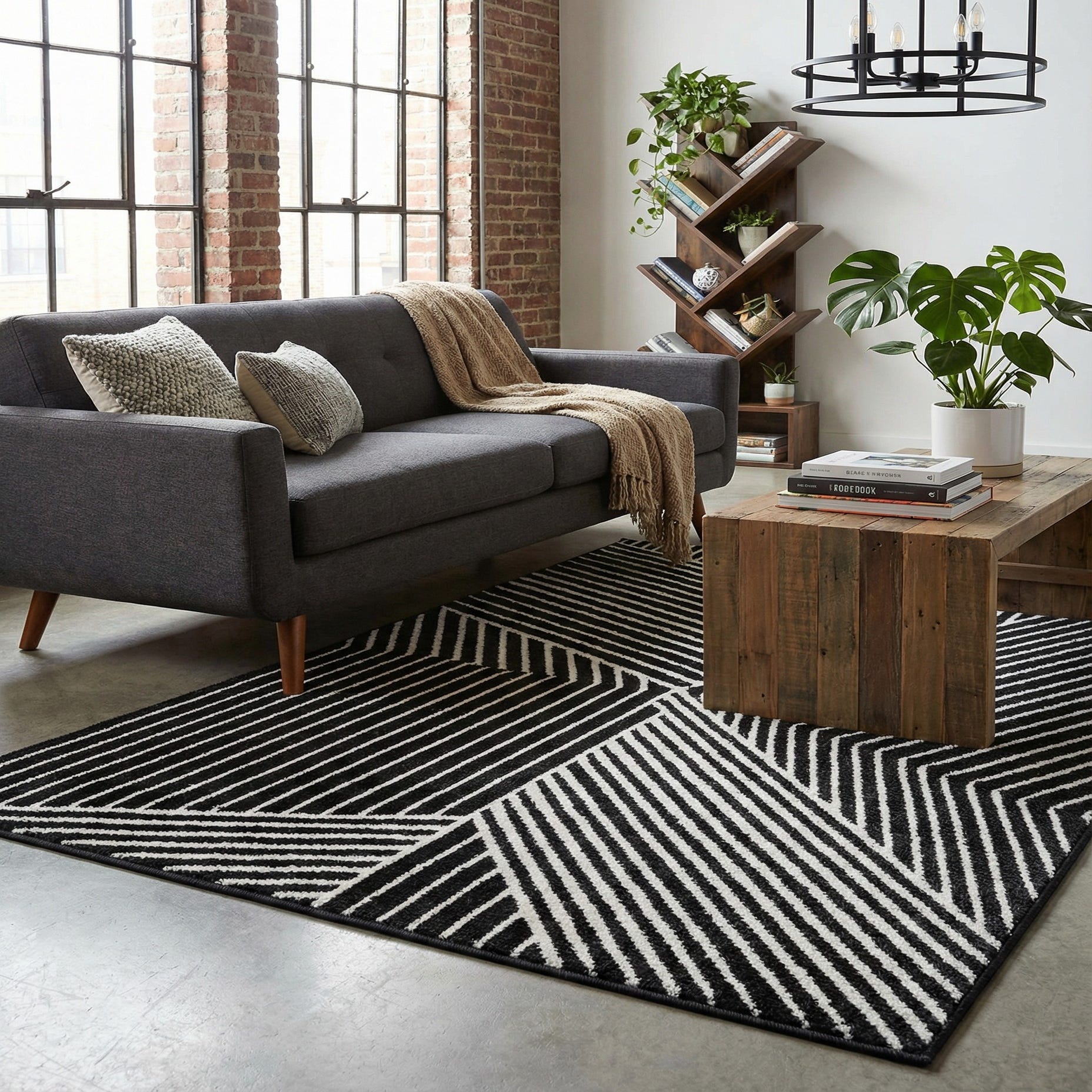 Primary color is Black. Colors in this rug include: Black, Ivory.