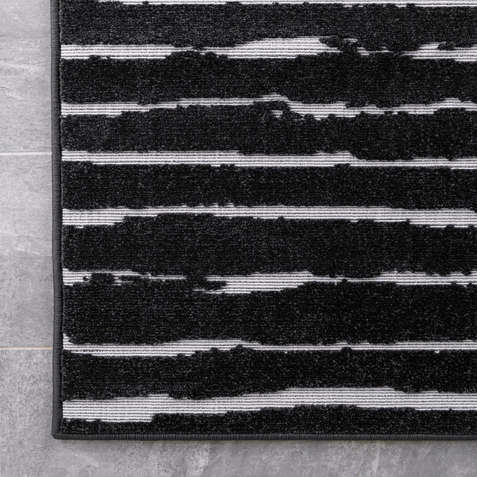 Primary color is Black. Colors in this rug include: Black, Ivory.
