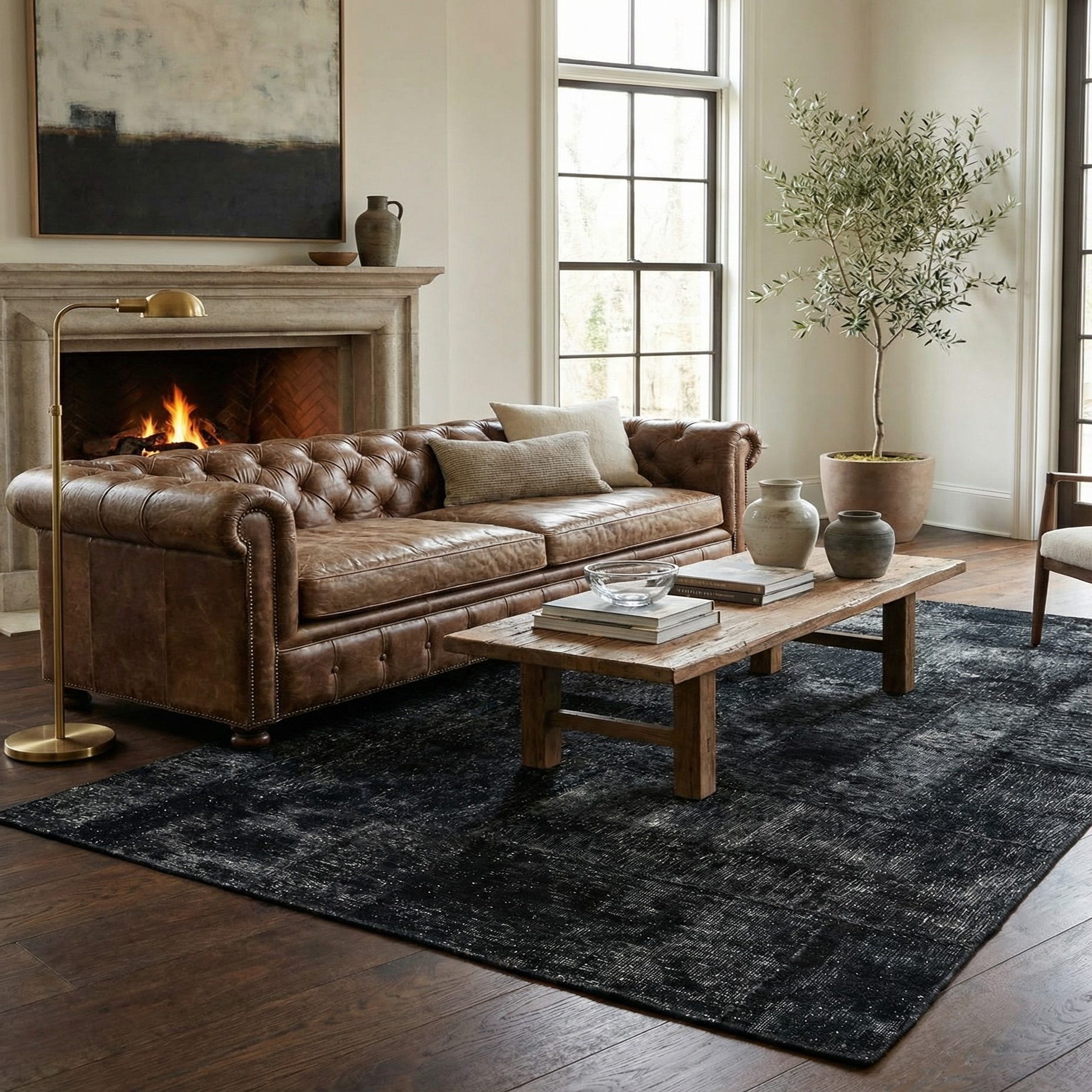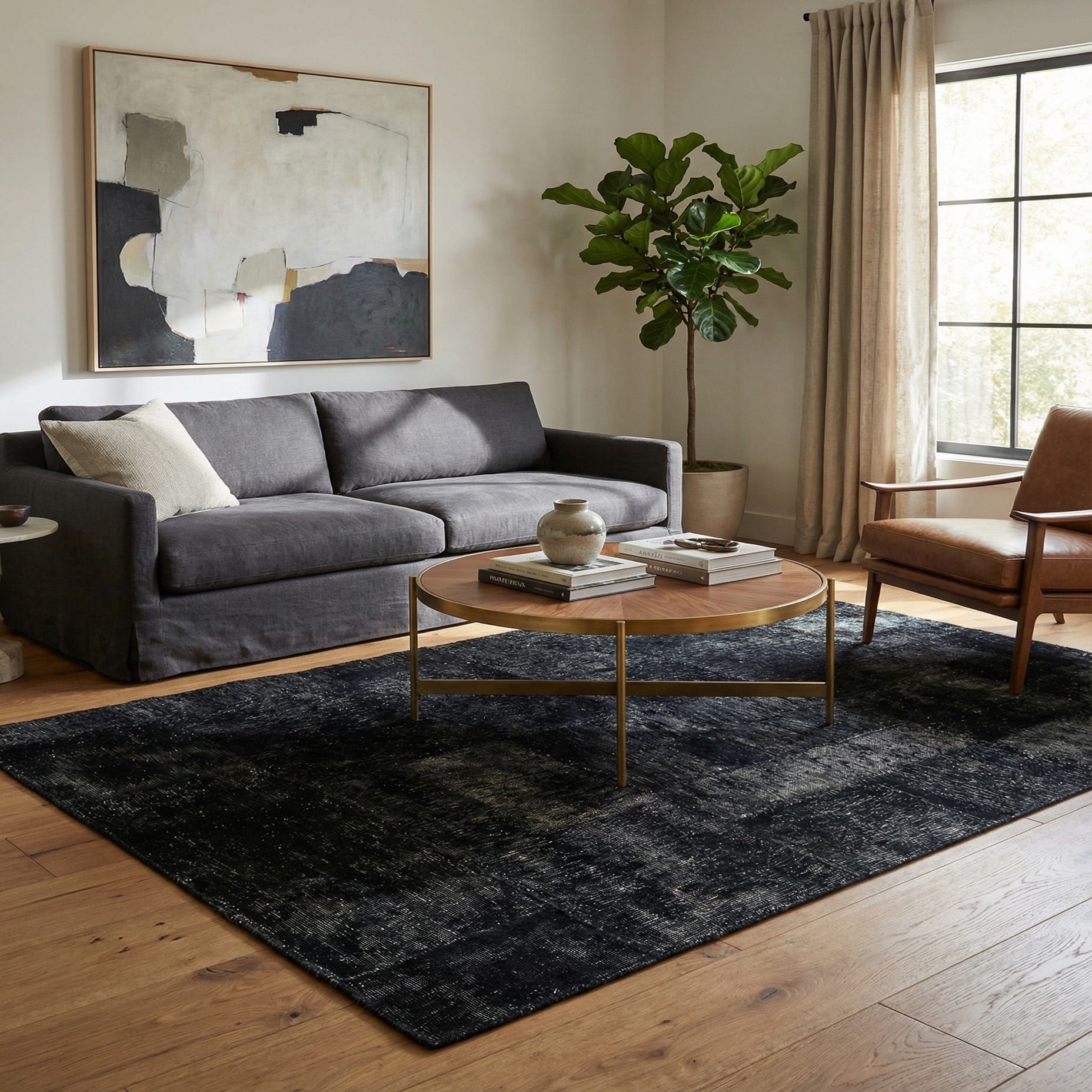 Primary color is Black. Colors in this rug include: Black, Gray, Ivory.