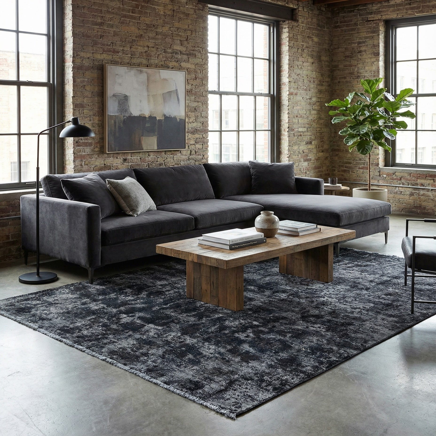 Primary color is Black. Colors in this rug include: Black, Gray.