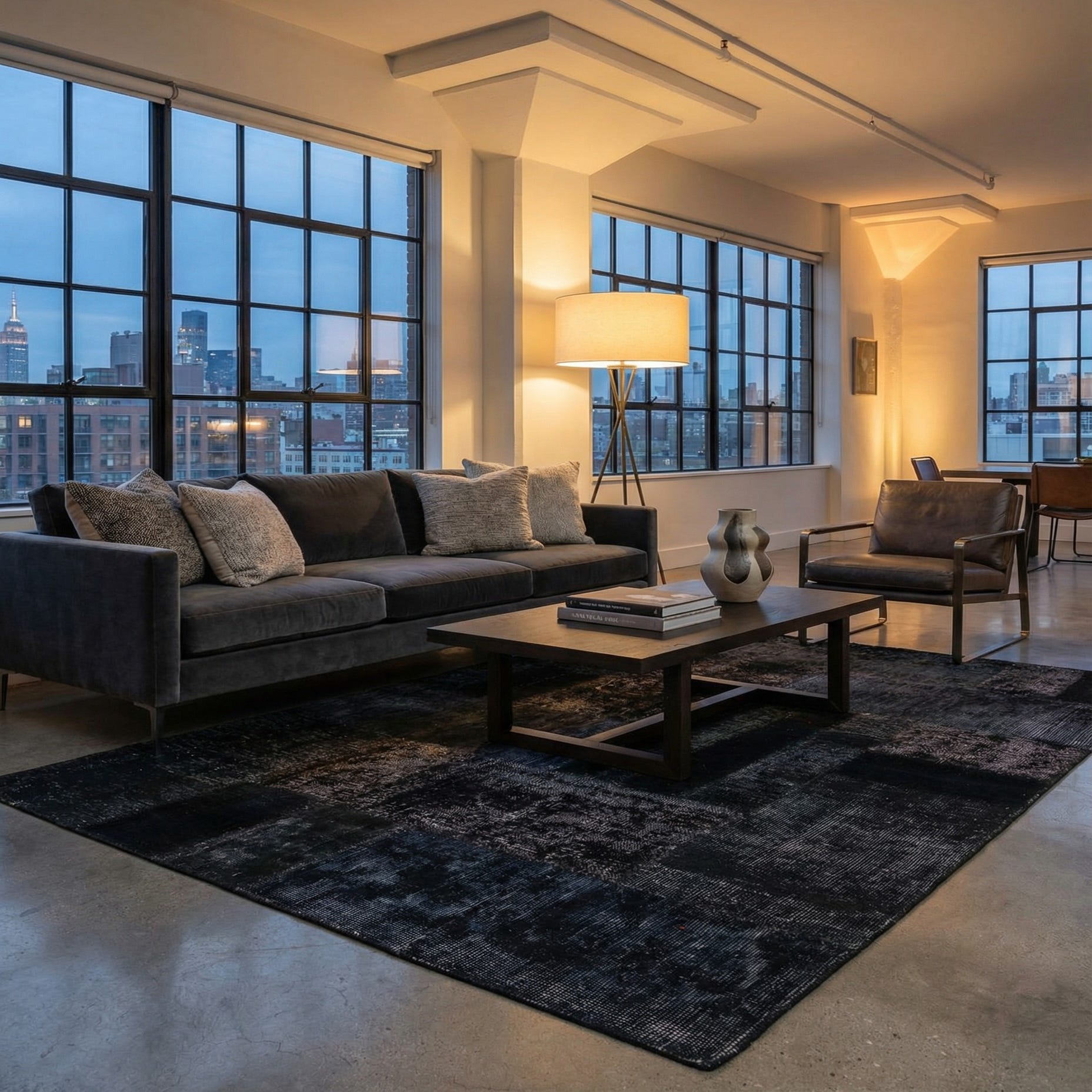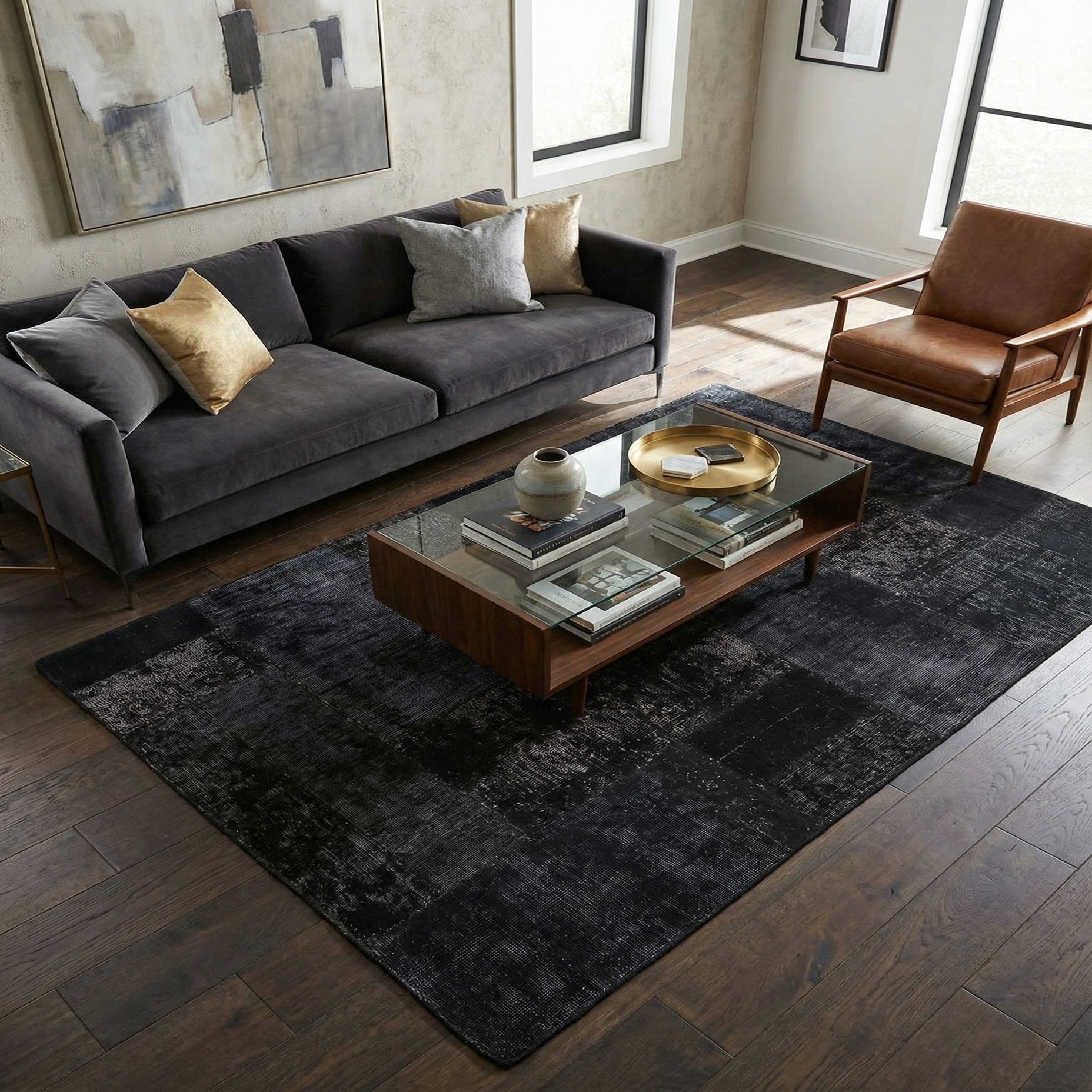 Primary color is Black. Colors in this rug include: Black, Gray.