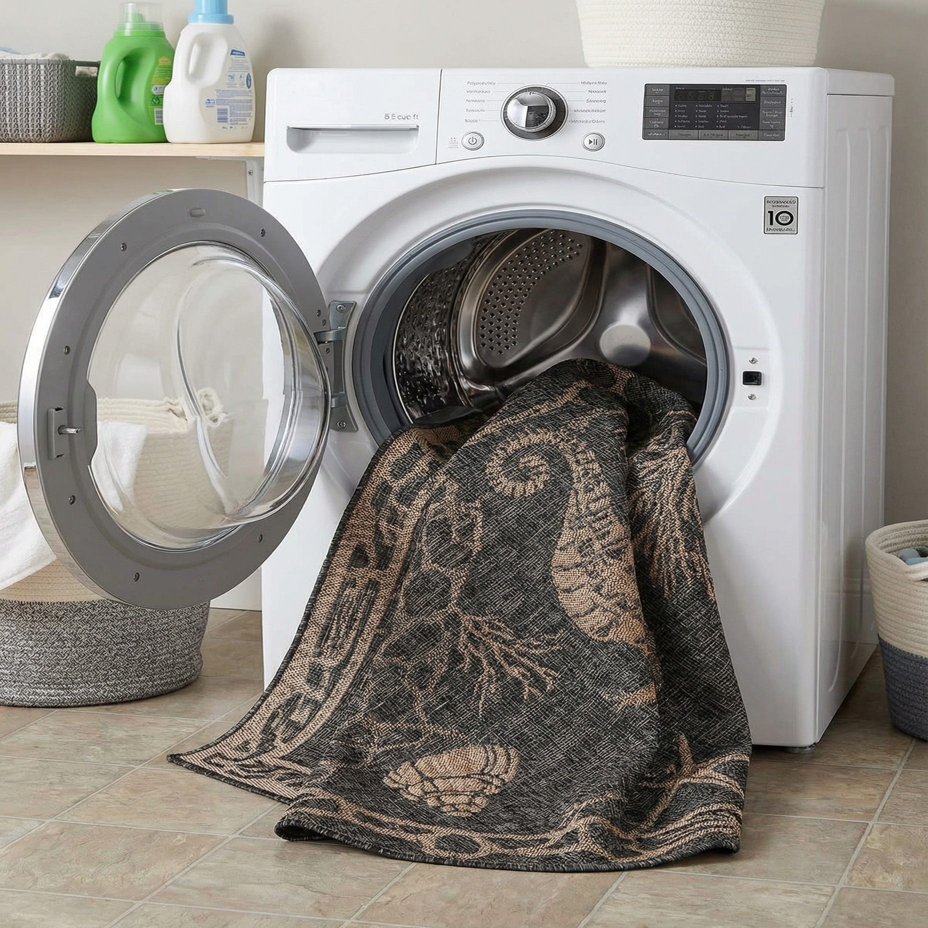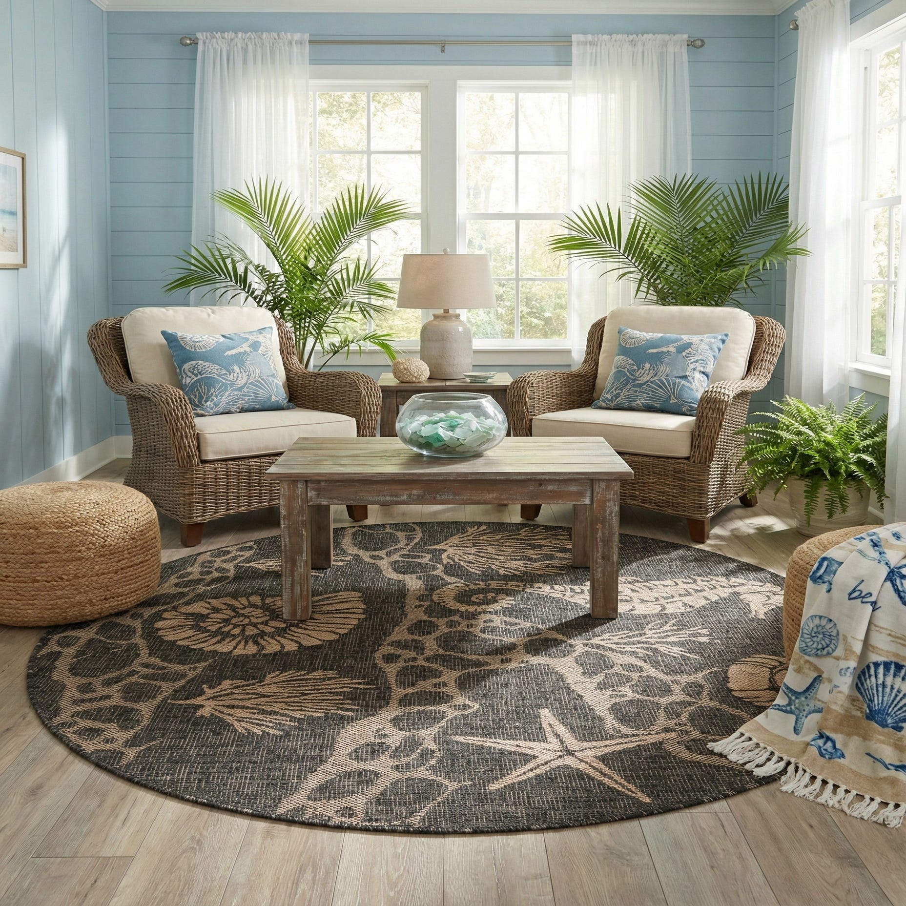 5' 3 x 5' 3 Washable Coastal Indoor / Outdoor Round Rug