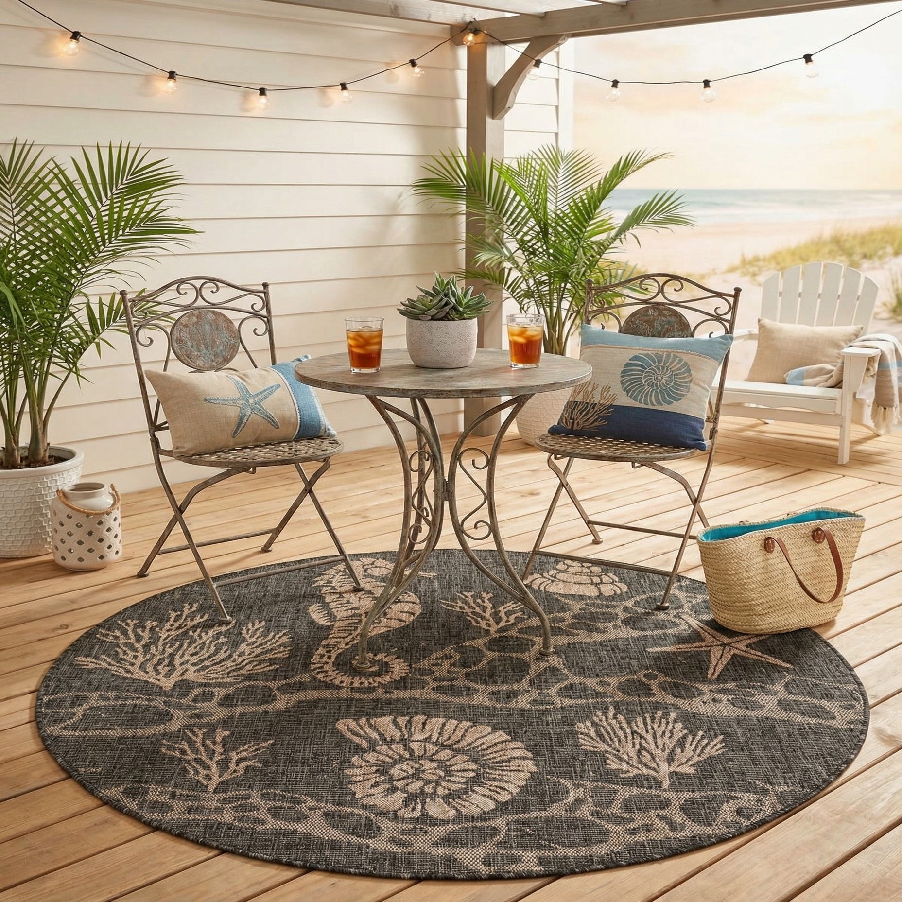 Primary image 5' 3 x 5' 3  Washable Coastal Indoor / Outdoor Round Rug