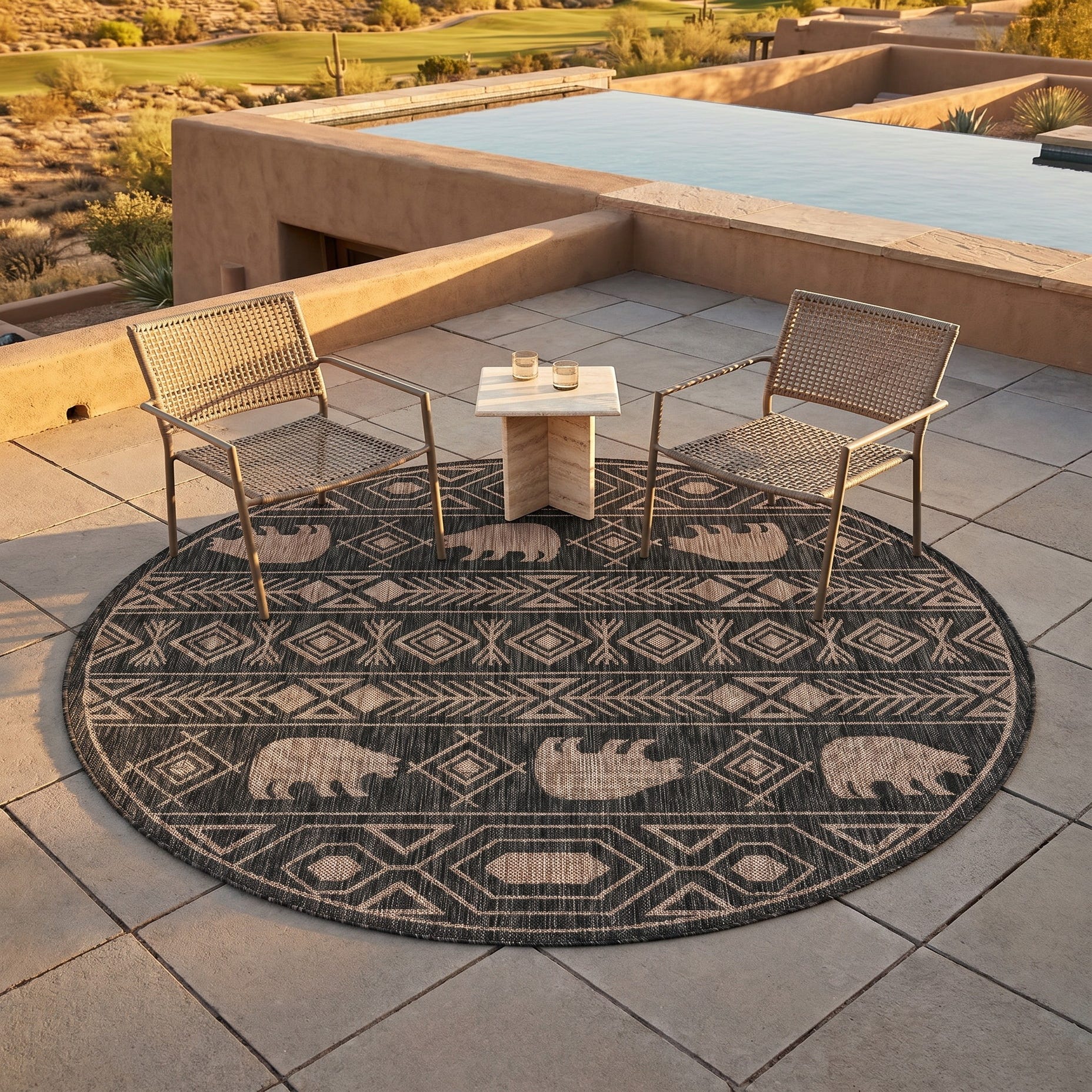 5' 3 x 5' 3 Easy-Clean Southwestern Indoor / Outdoor Round Rug