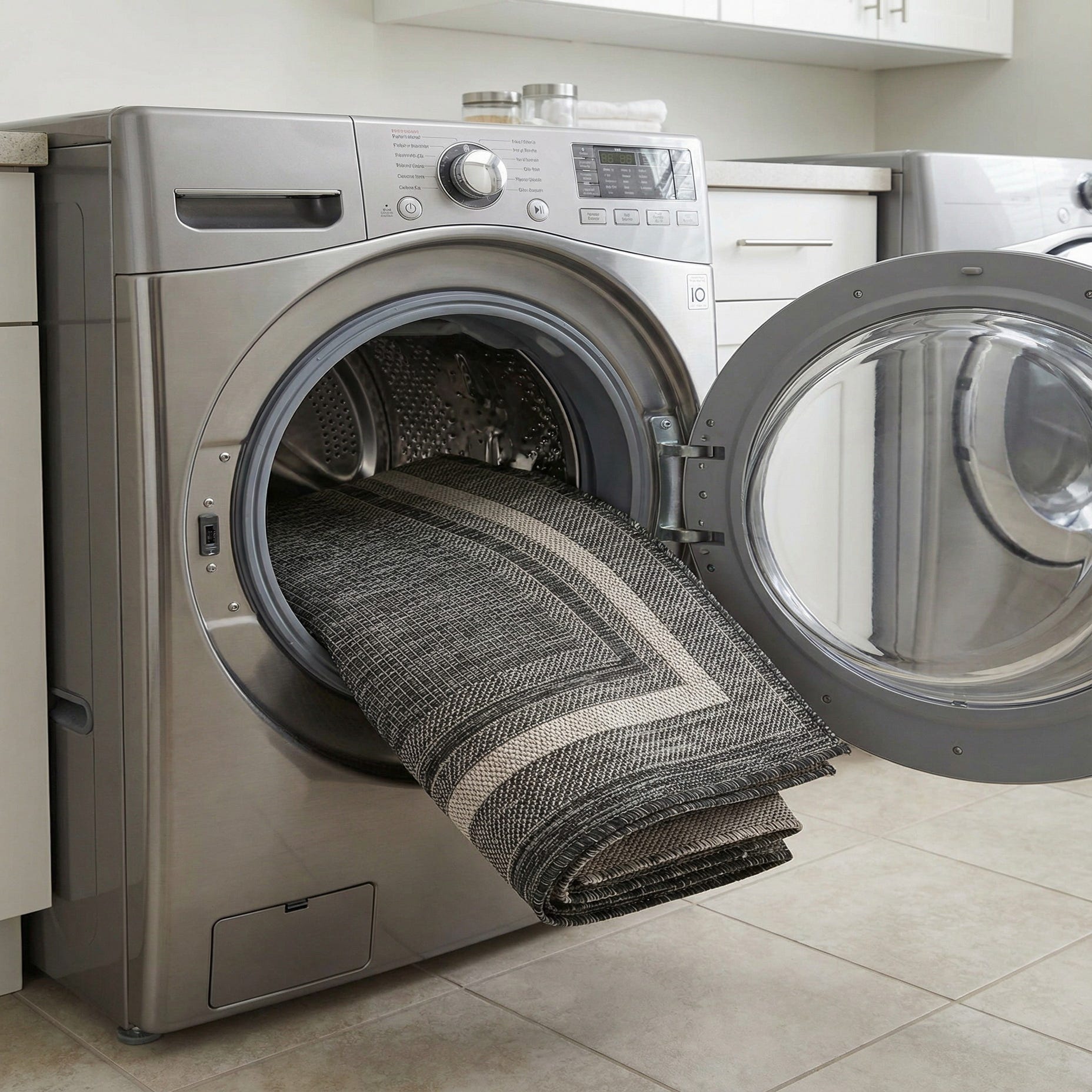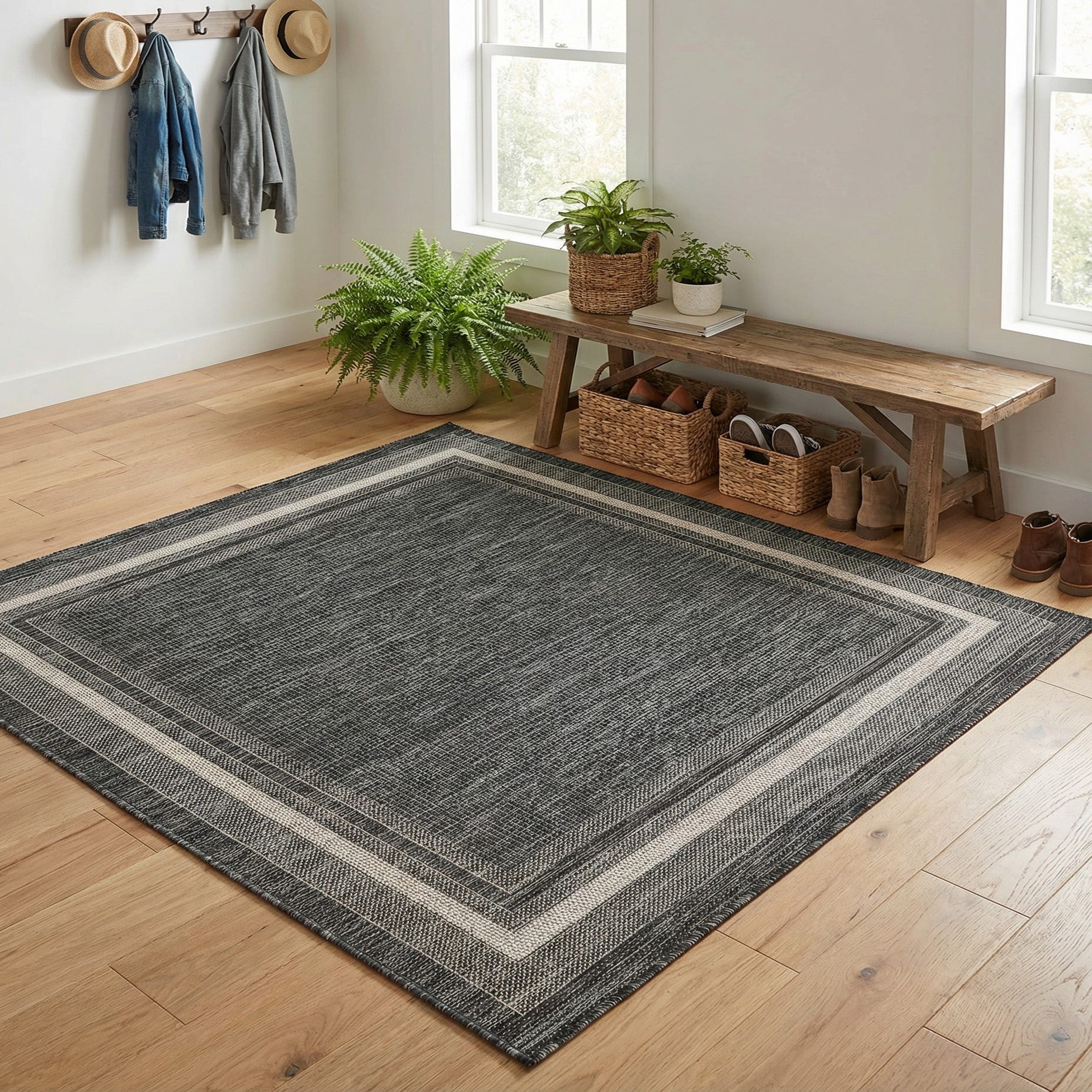 5' 3 x 5' 3 Washable Border Indoor / Outdoor Square Rug