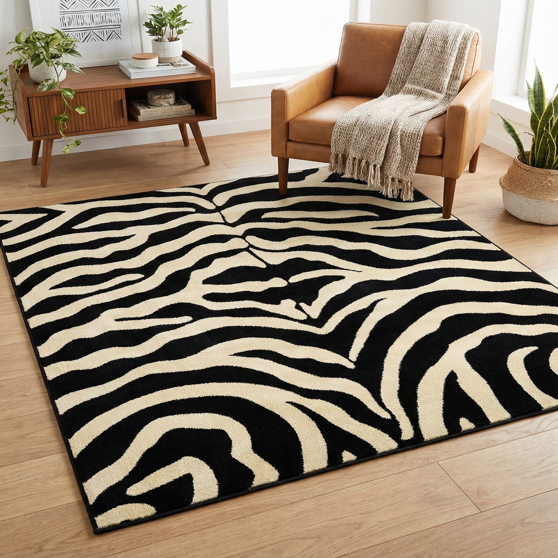 Primary color is Black. Colors in this rug include: Black, Cream.