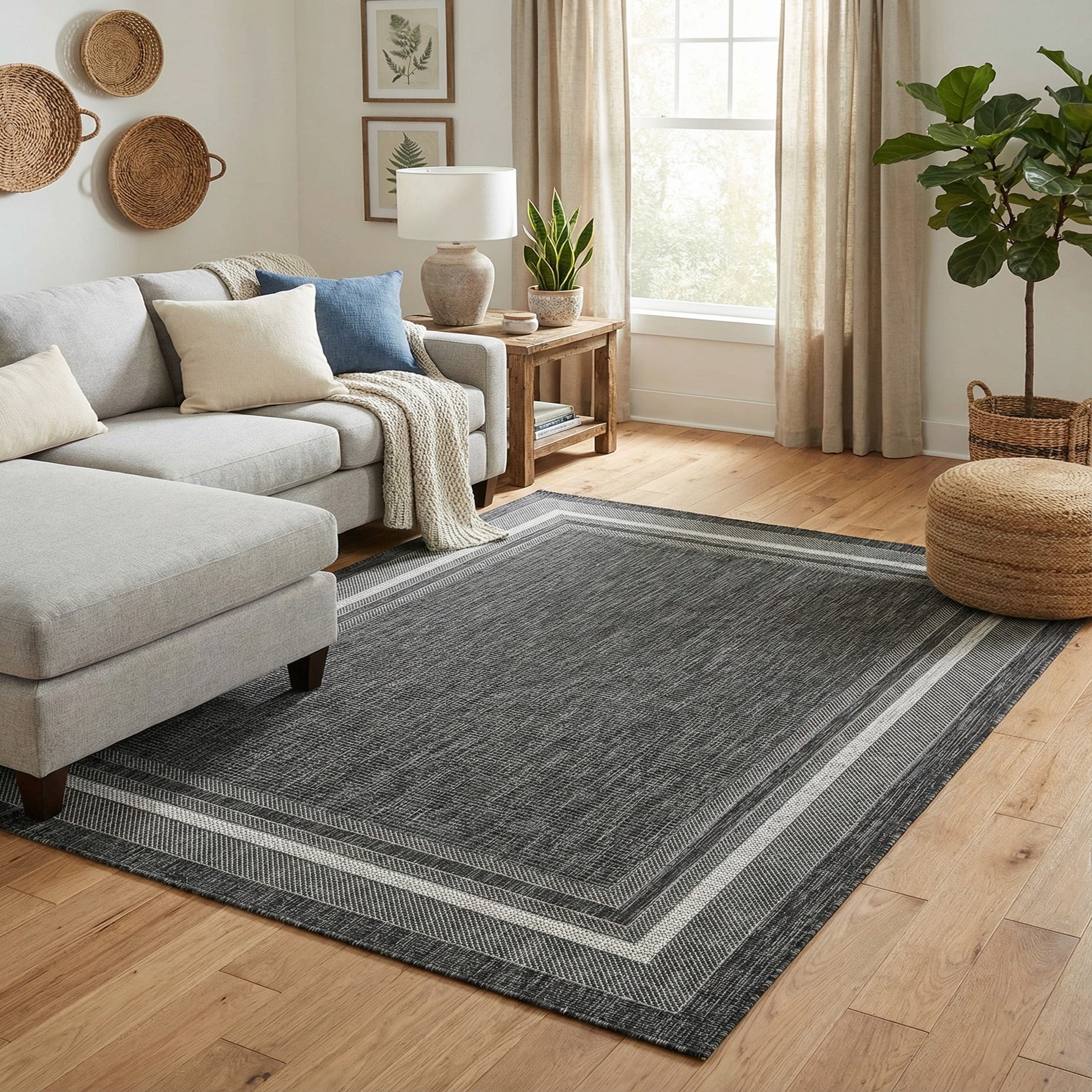5' 3 x 7' Washable Border Indoor / Outdoor Rug