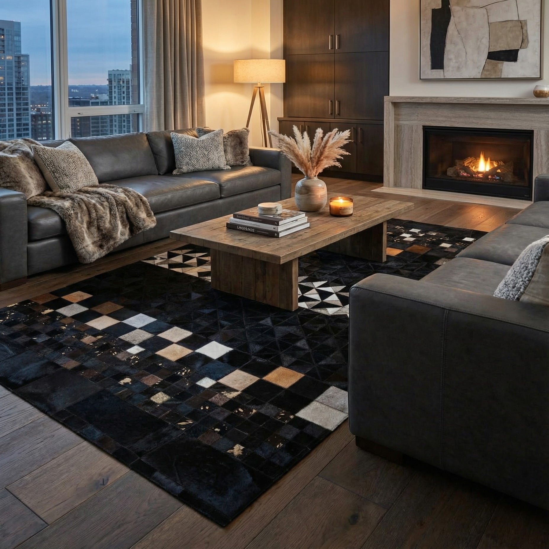 5' 1 x 7' 10 Cowhide Leather Rug