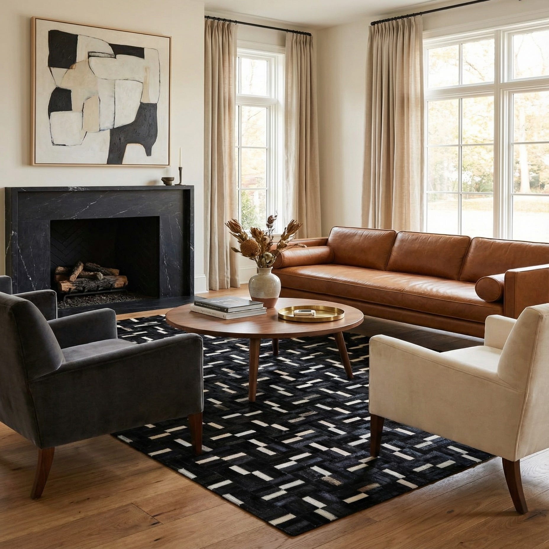 Detail image of 5' x 8' 2 Cowhide Leather Rug