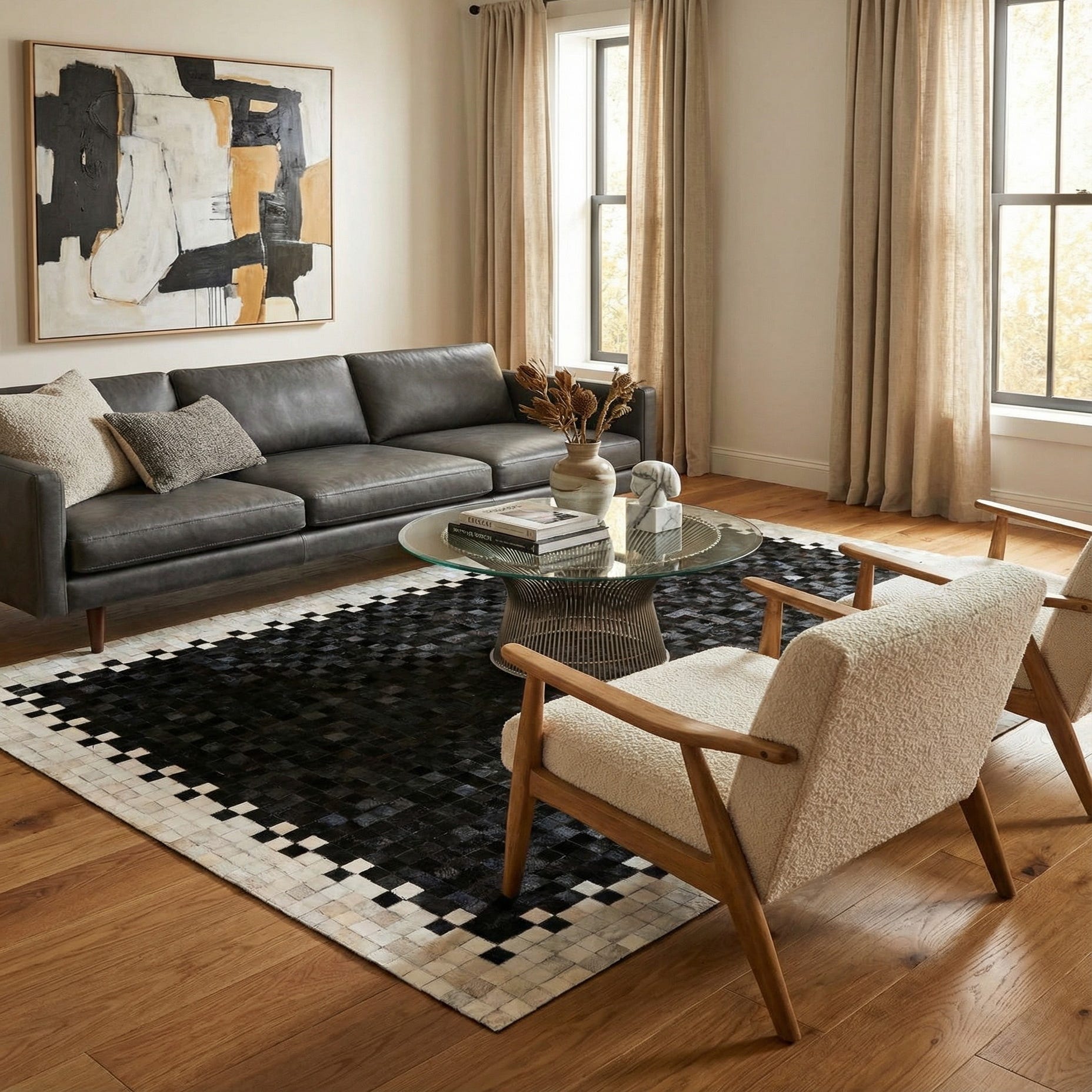 Detail image of 4' 11 x 7' 10 Cowhide Stocks Rug