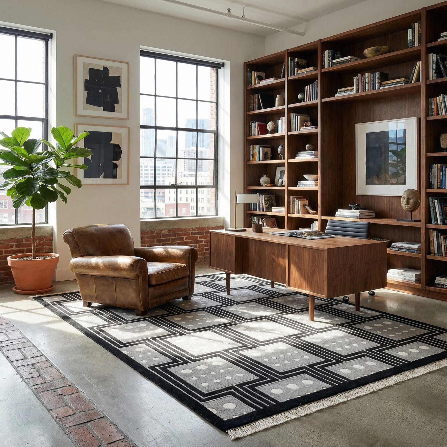 Primary color is Black. Colors in this rug include: Black, Beige, Gray, Silver.