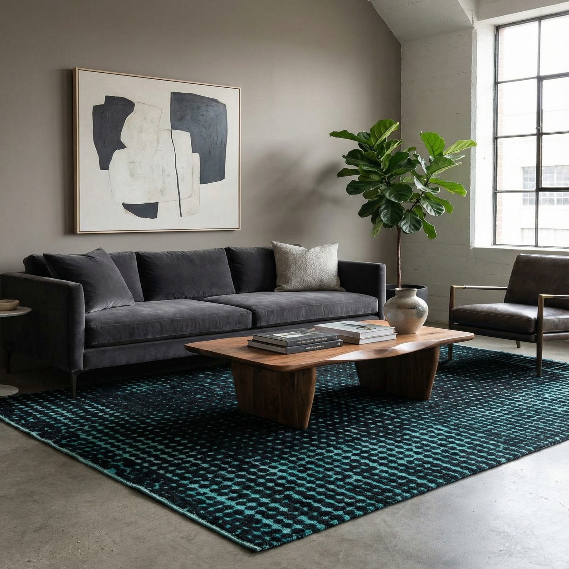 Primary color is Black. Colors in this rug include: Black, Navy Blue.