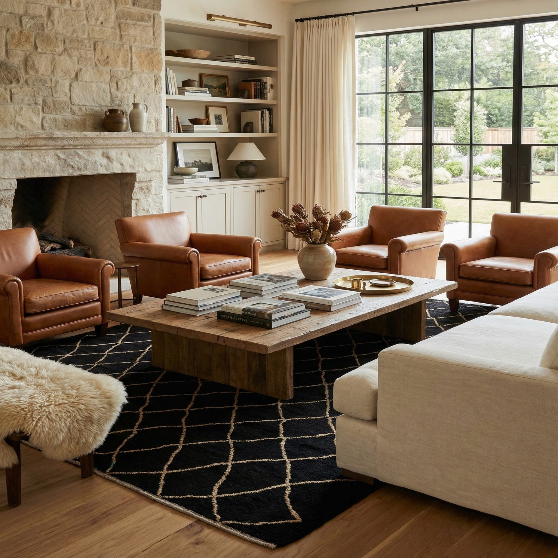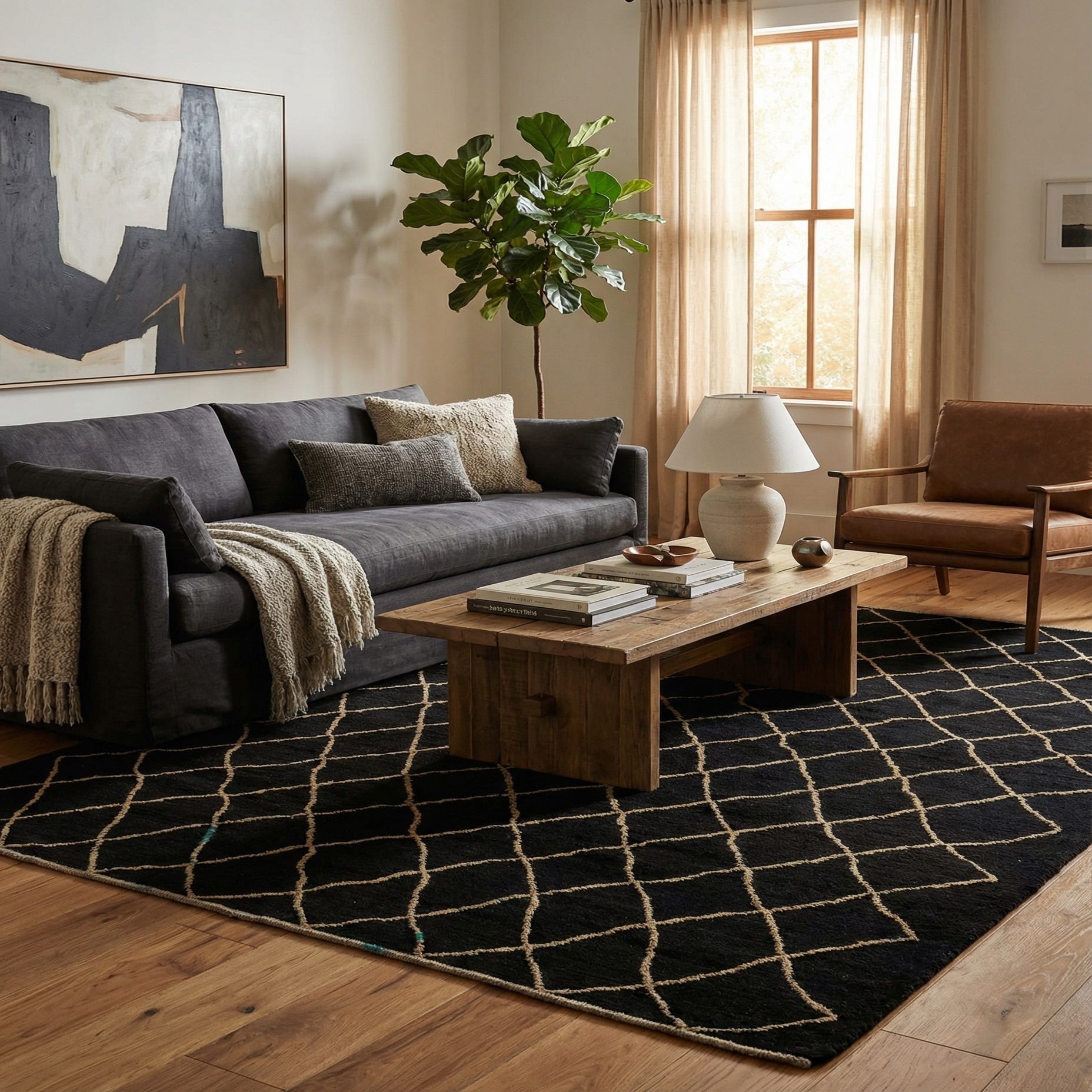 Primary color is Black. Colors in this rug include: Black, Ivory.