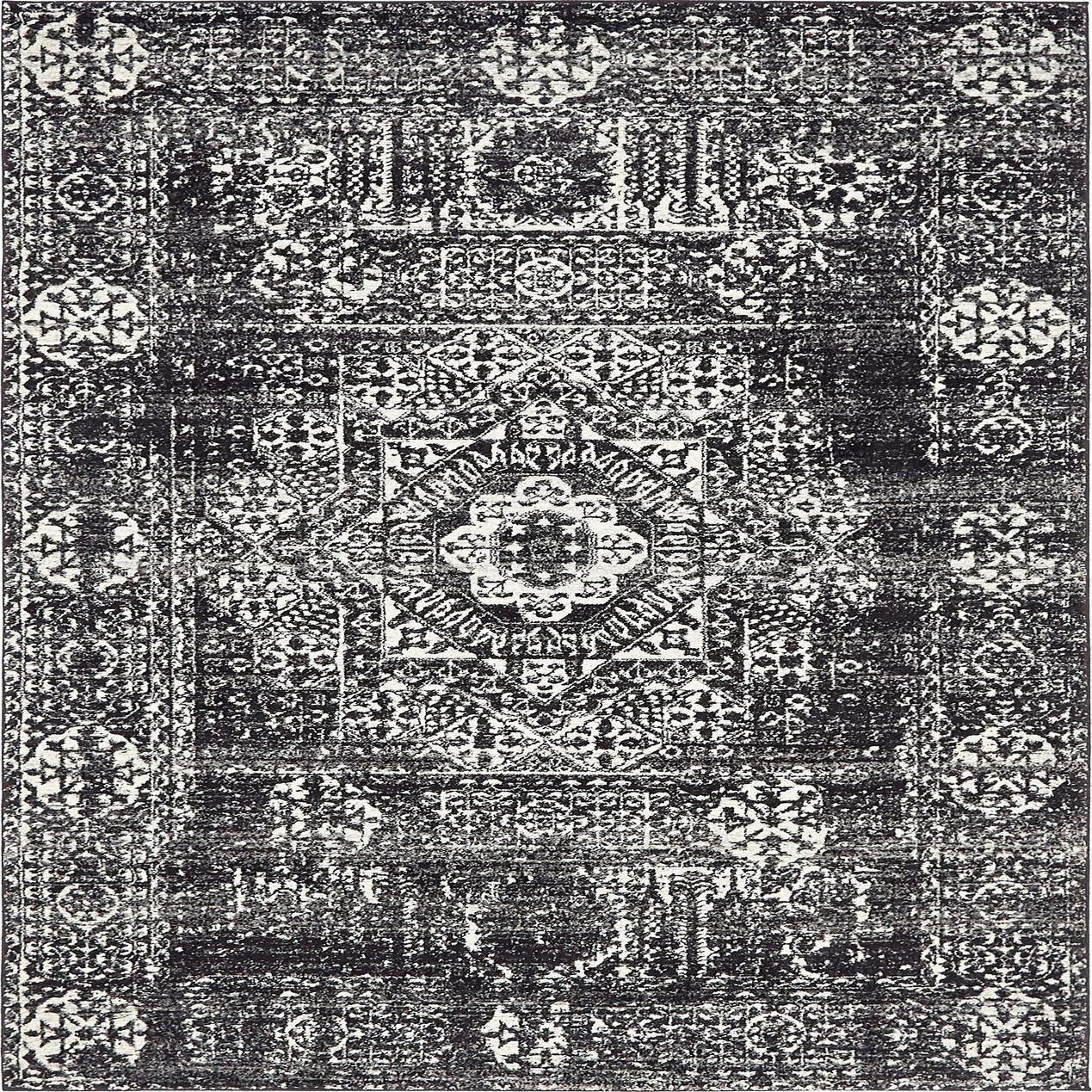 Primary color is Black. Colors in this rug include: Black, Gray, Ivory.