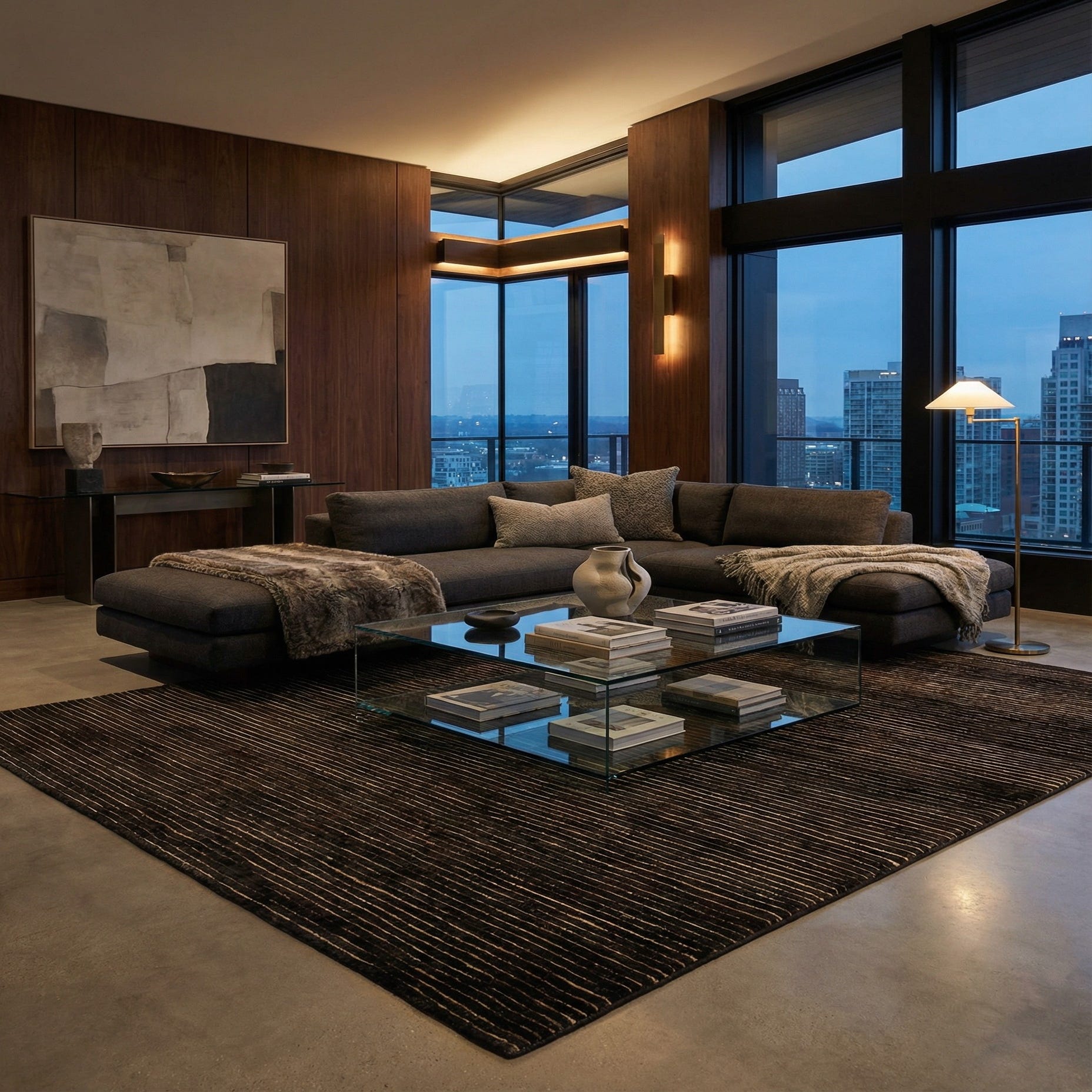 Primary color is Black. Colors in this rug include: Black, Black, Beige.