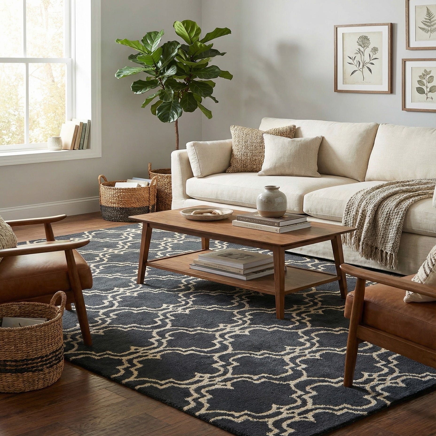 Primary color is Black. Colors in this rug include: Black, Ivory.
