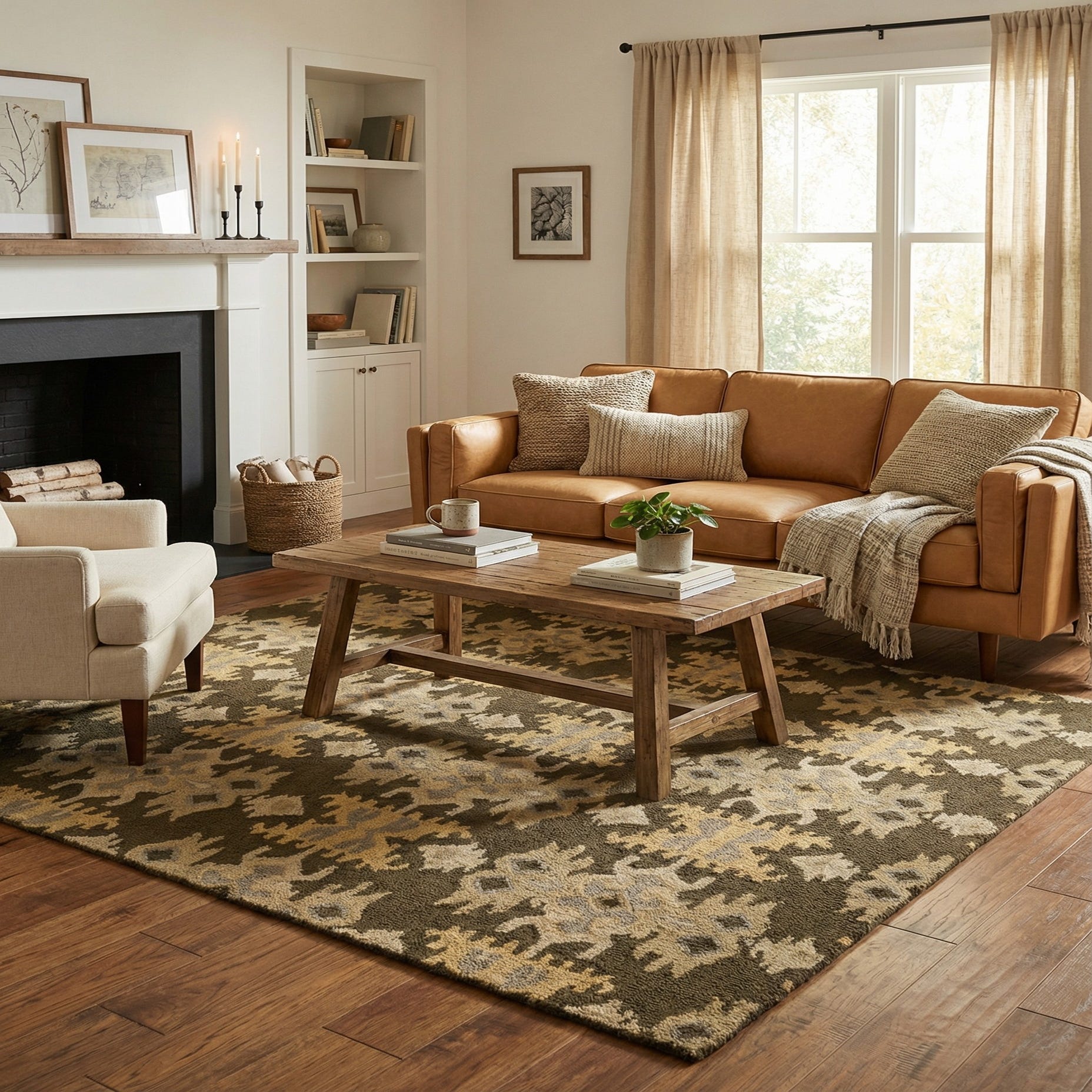Primary color is Black. Colors in this rug include: Black, Beige, Gray, Yellow.
