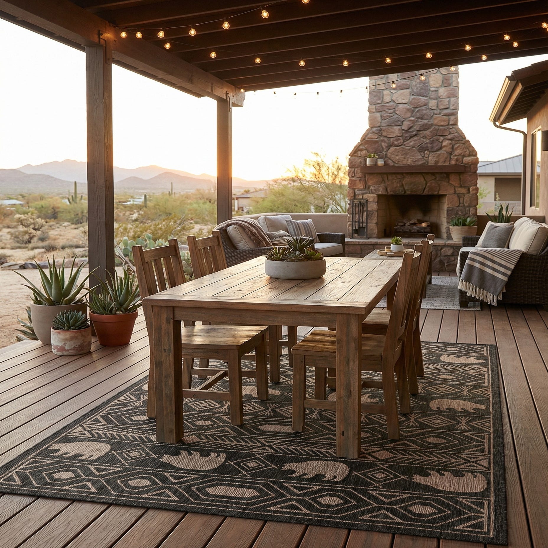 5' 3 x 8' Washable Southwestern Indoor / Outdoor Rug
