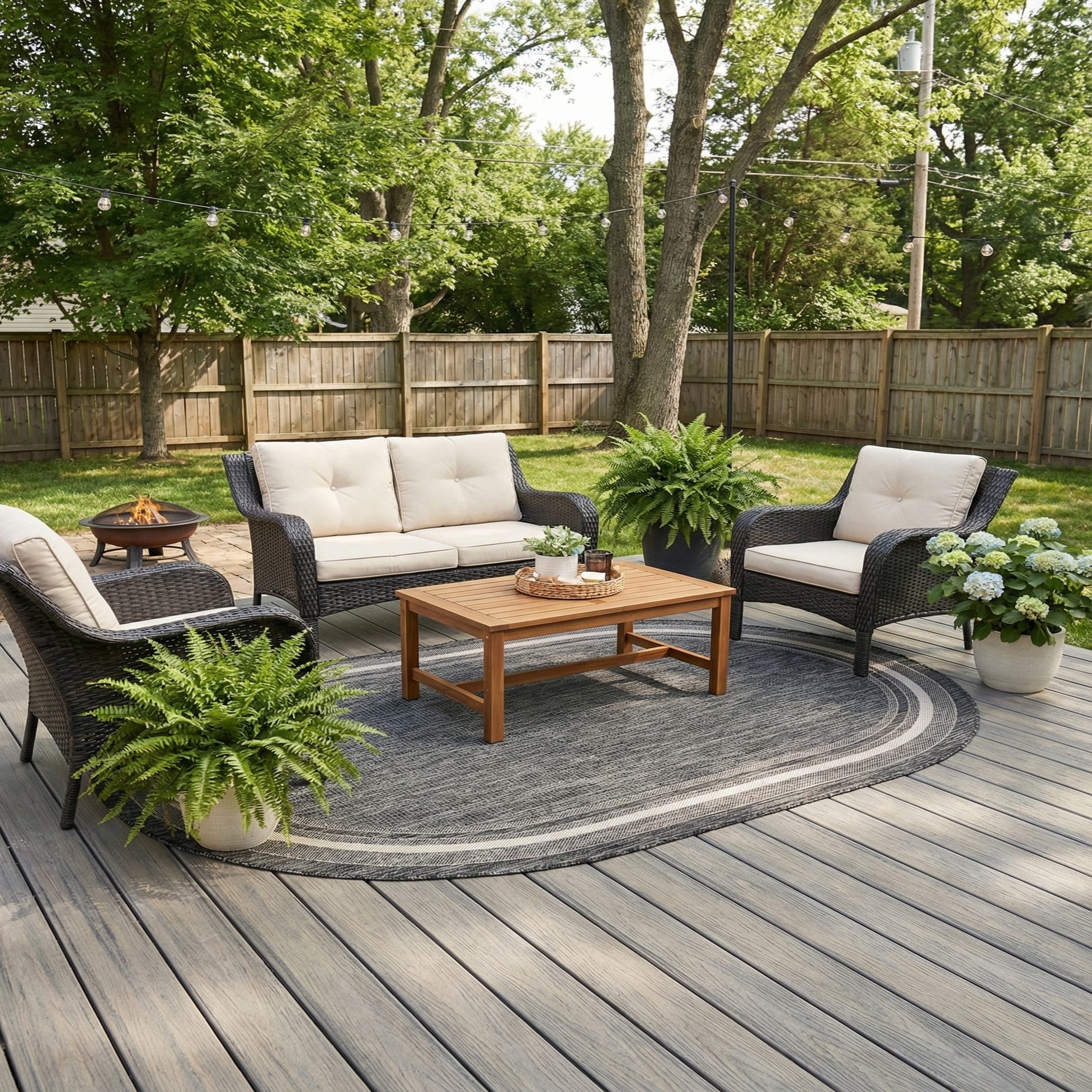 5' 3 x 8' Washable Border Indoor / Outdoor Oval Rug