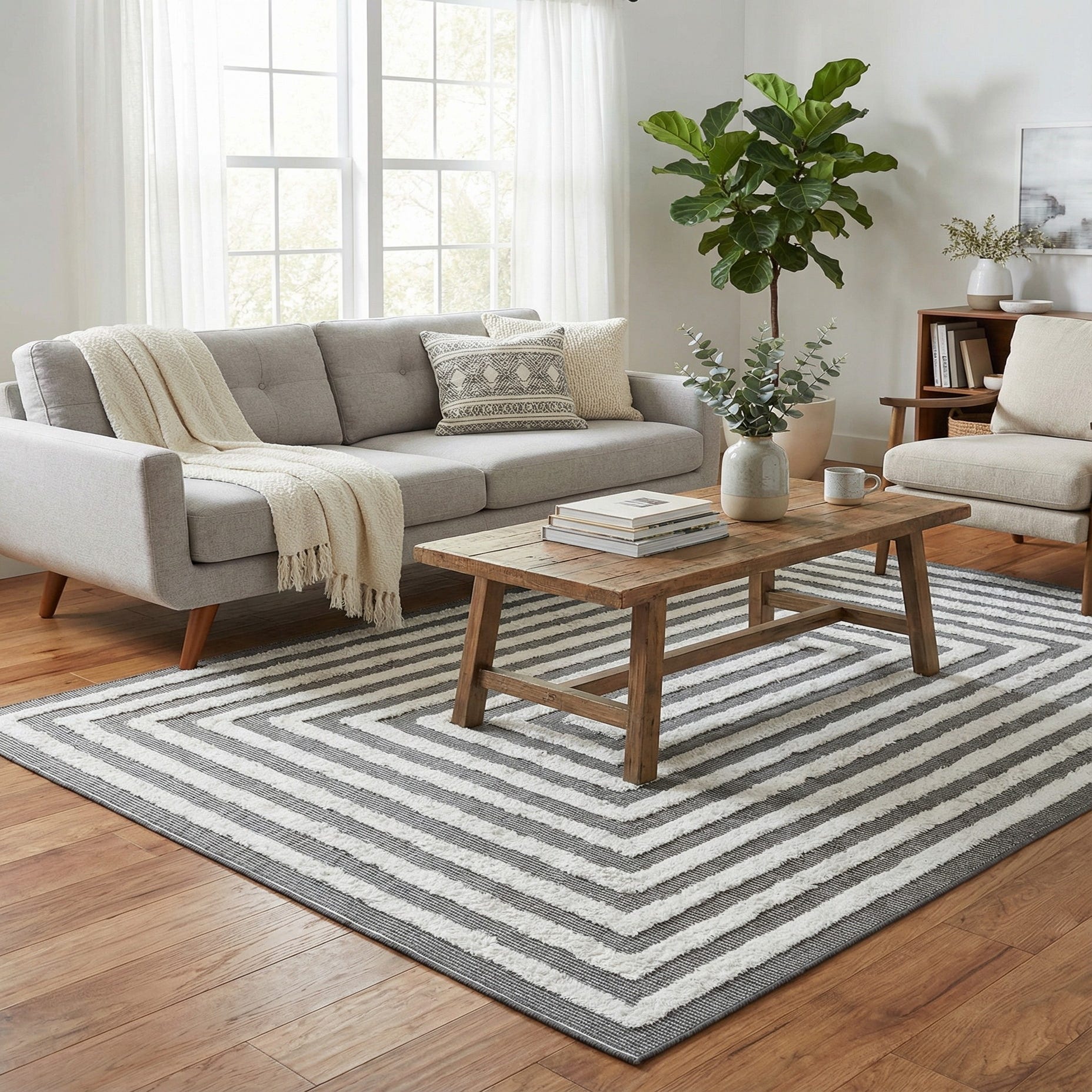 Primary color is Black. Colors in this rug include: Black, Ivory.