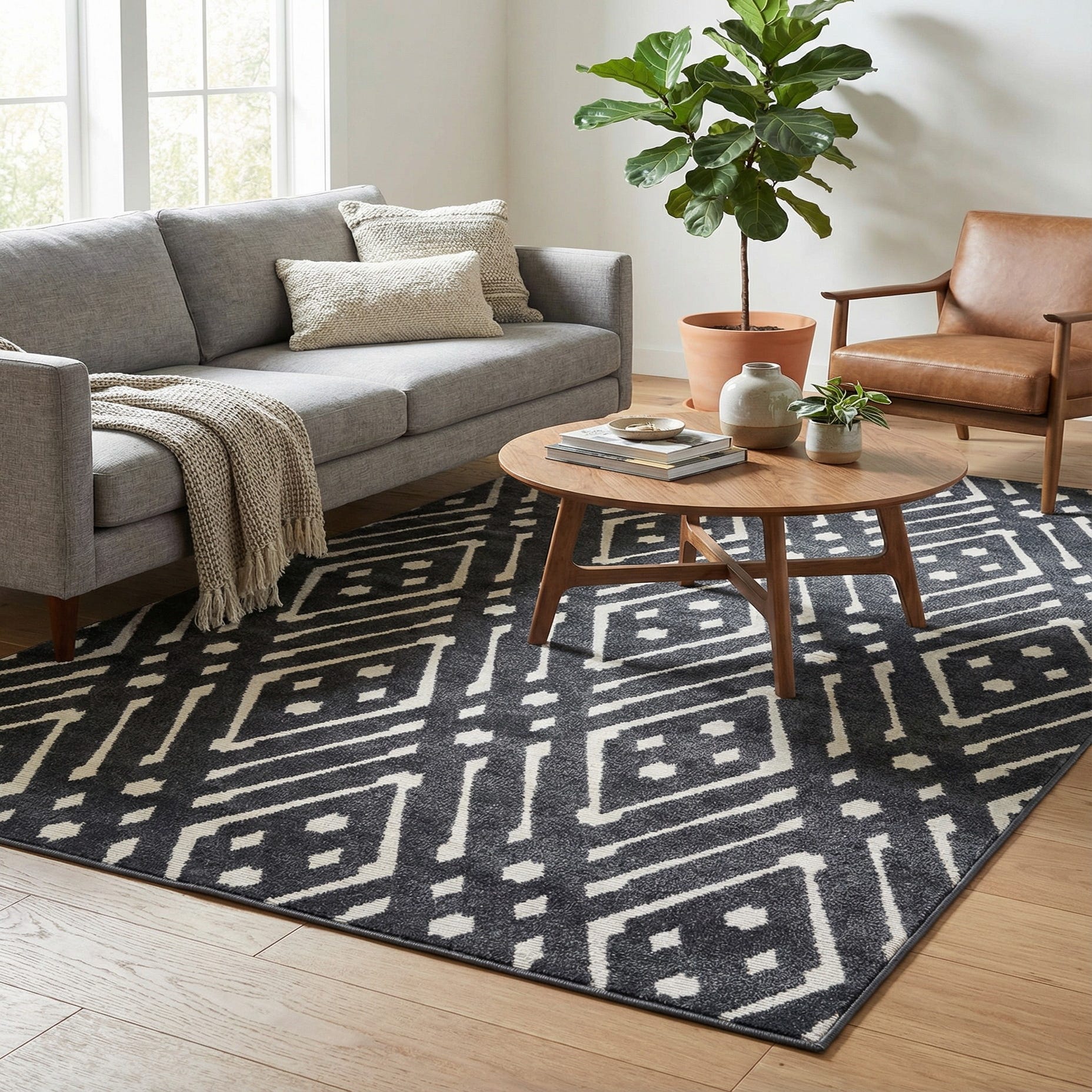 Primary color is Black. Colors in this rug include: Black, Ivory.