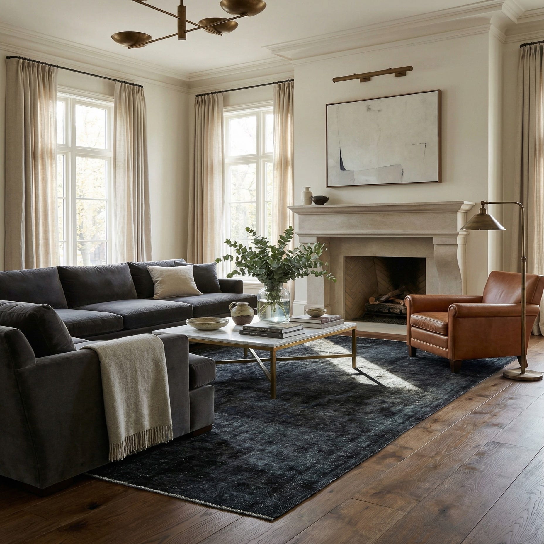 Primary color is Black. Colors in this rug include: Black, Ivory.
