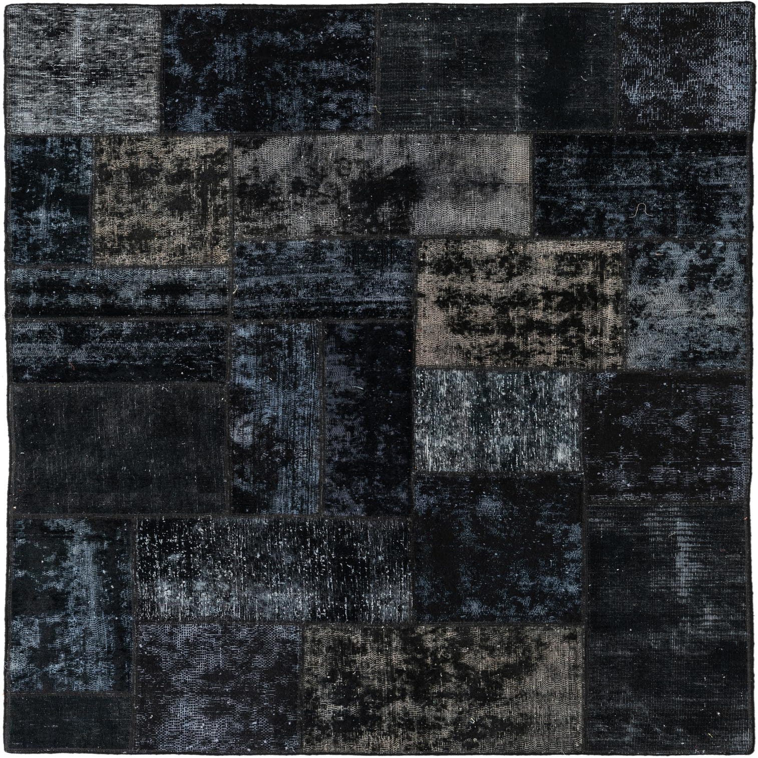 Primary color is Black. Colors in this rug include: Black, Ivory, Blue.