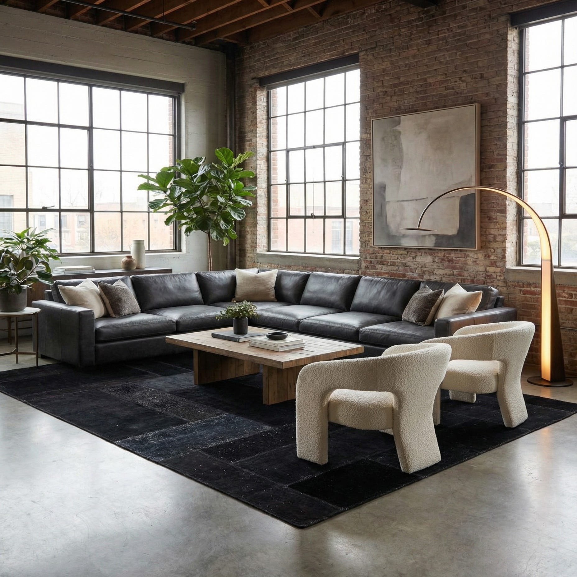 Primary color is Black. Colors in this rug include: Black, Gray.