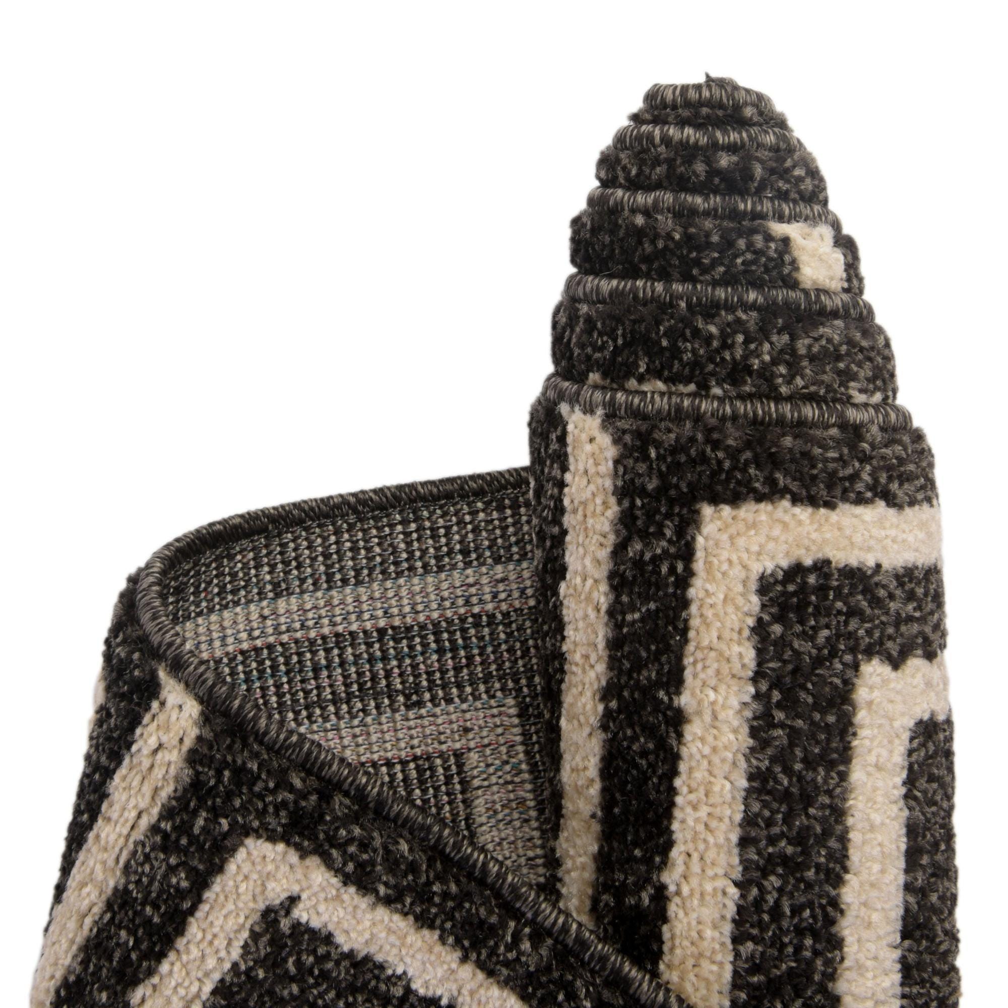 Primary color is Black. Colors in this rug include: Black, Beige.