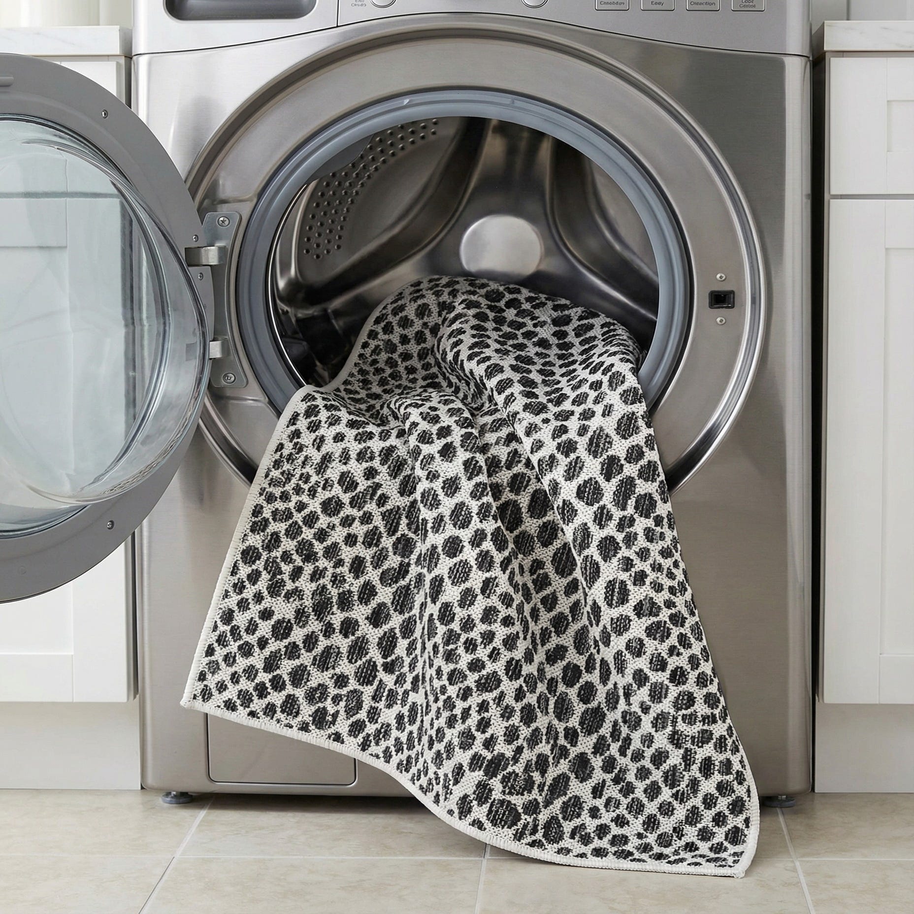 Primary color is Black. Colors in this rug include: Black, Ivory.
