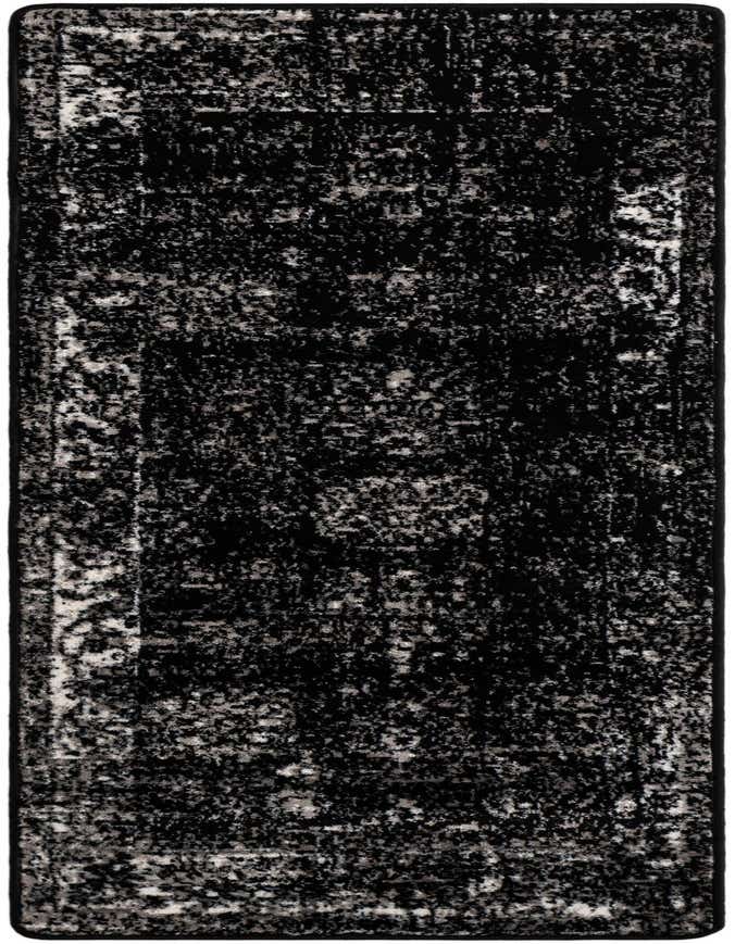 Primary color is Black. Colors in this rug include: Black, Gray, Ivory.