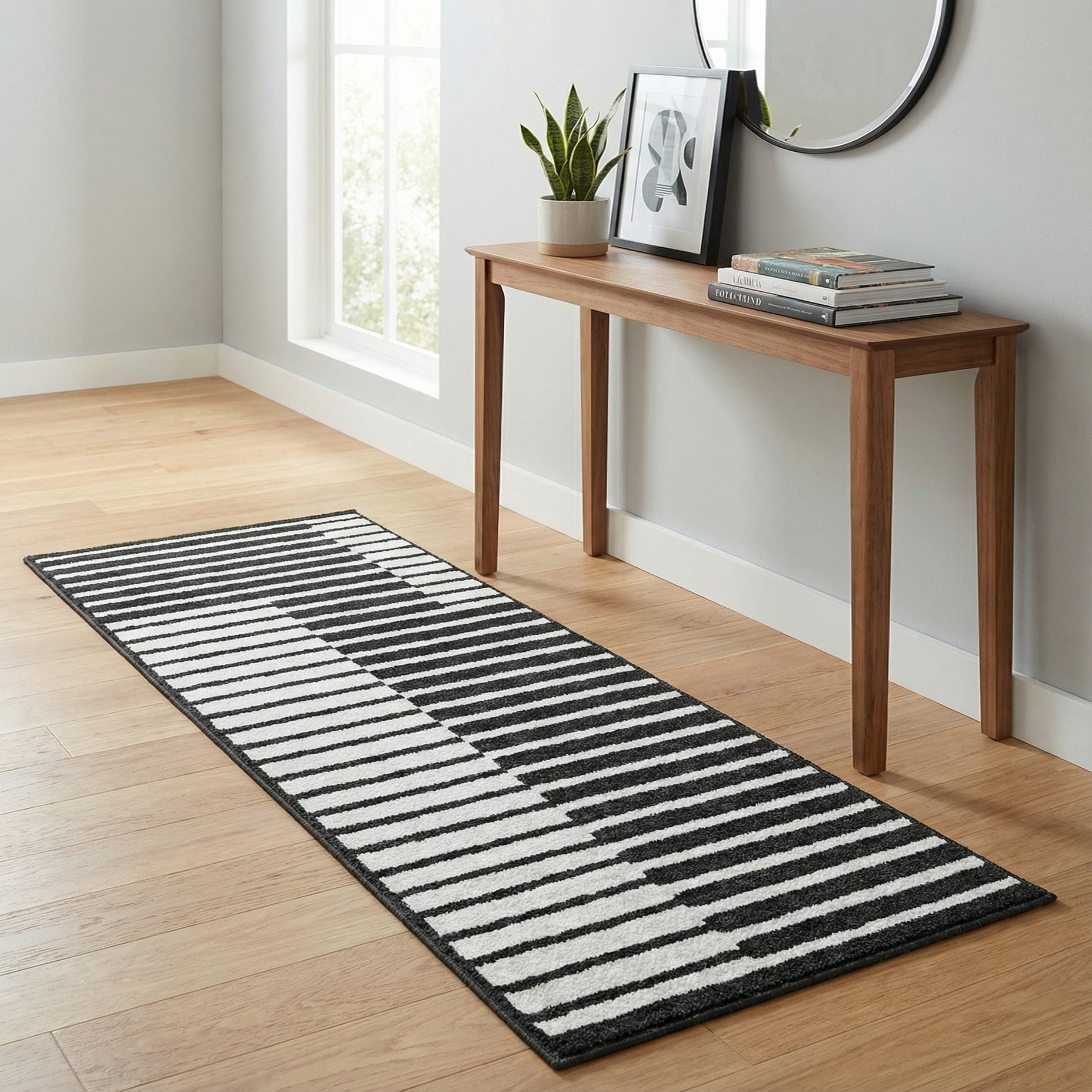 Primary color is Black. Colors in this rug include: Black, Ivory.