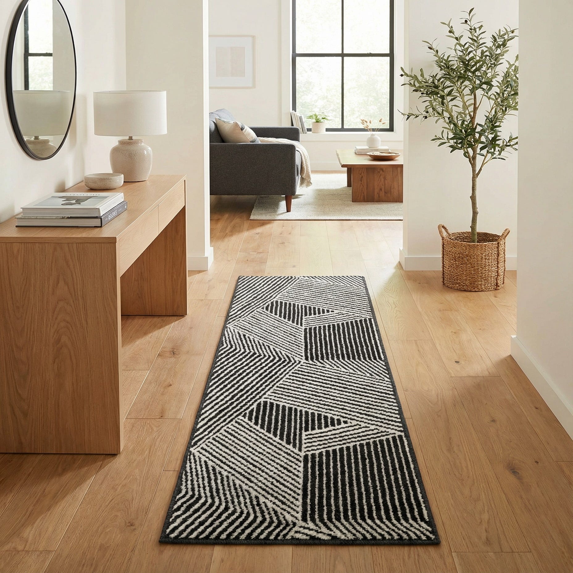 Primary color is Black. Colors in this rug include: Black, Ivory.