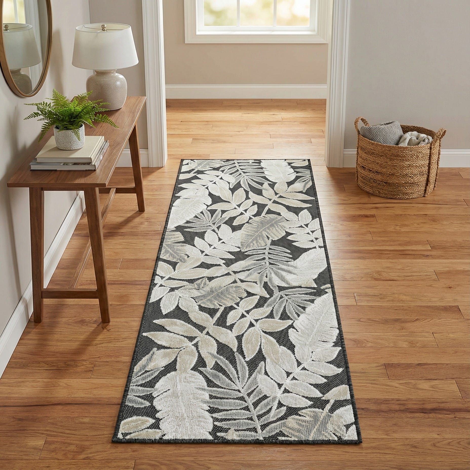 2' 2 x 6' Washable Botanical Indoor / Outdoor Runner Rug