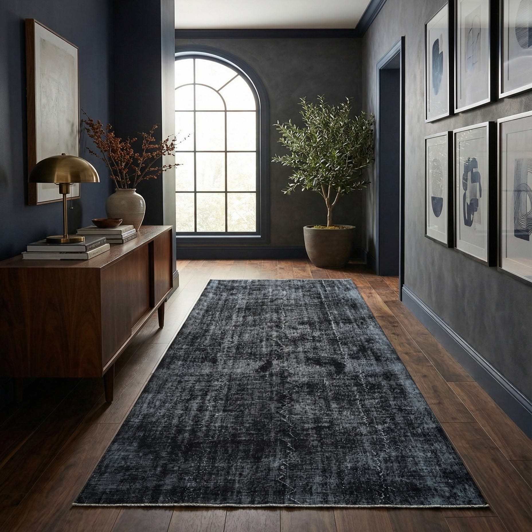 Primary color is Black. Colors in this rug include: Black, Silver, Gray.