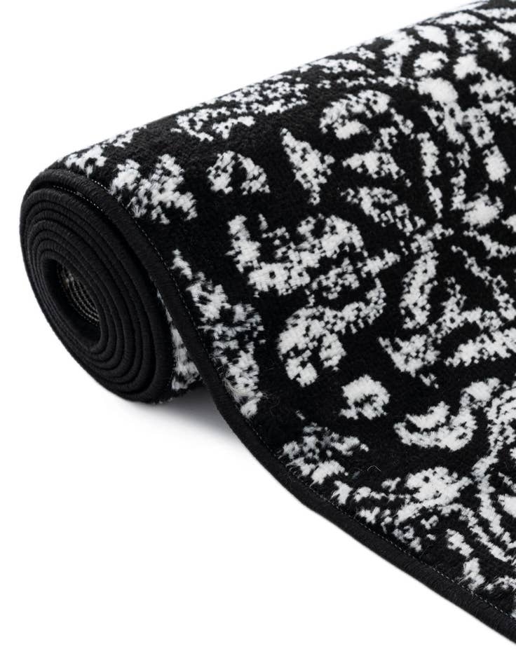 Primary color is Black. Colors in this rug include: Black, Ivory.